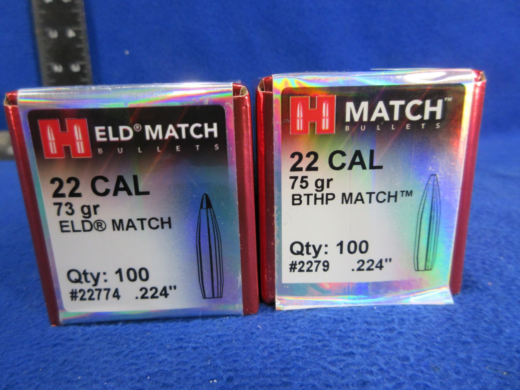 22 Cal. .224" Hornady Bullets - Sealed Box of 100 (73gr ELD Match), Box of Approx. 60 (75gr BTHP Match)