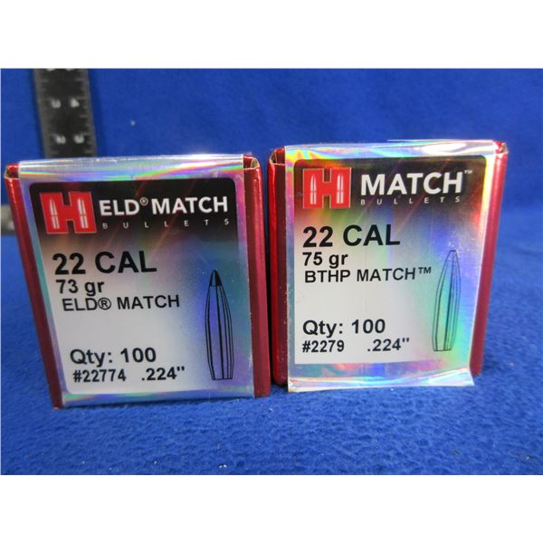 22 Cal. .224" Hornady Bullets - Sealed Box of 100 (73gr ELD Match), Box of Approx. 60 (75gr BTHP Match)