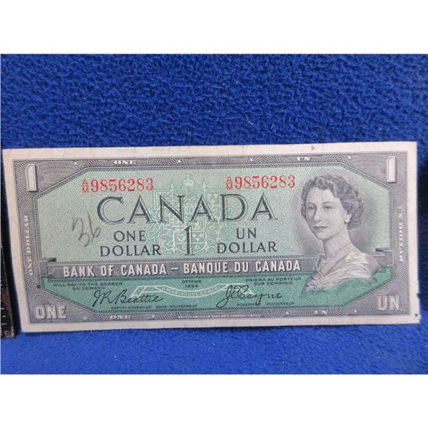 2 Canadian One Dollar Bills - 1954 and 1973