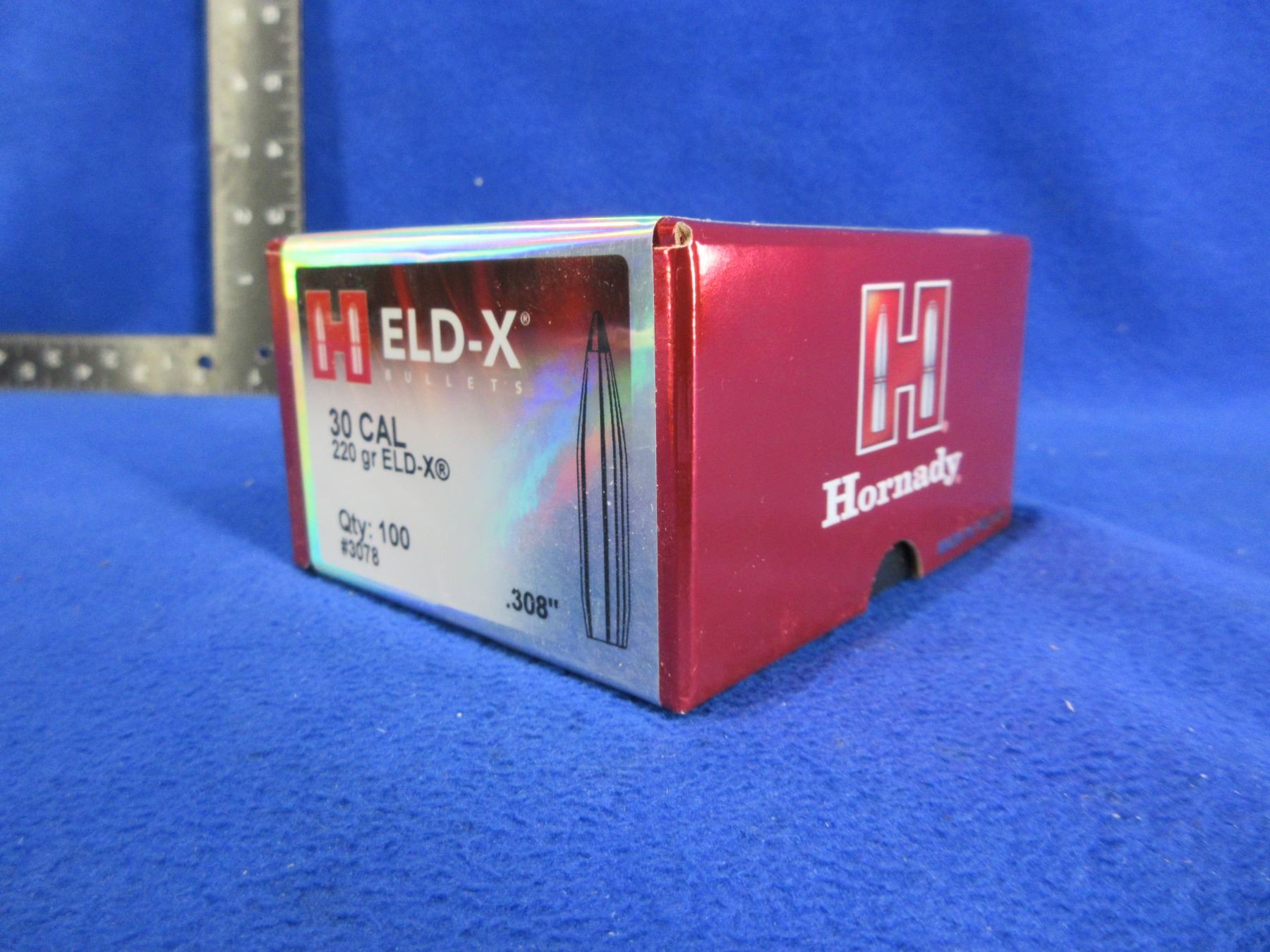 Lot 1065 30 Cal. .308" 220gr ELD-X Hornady Bullets - Sealed Box of 100