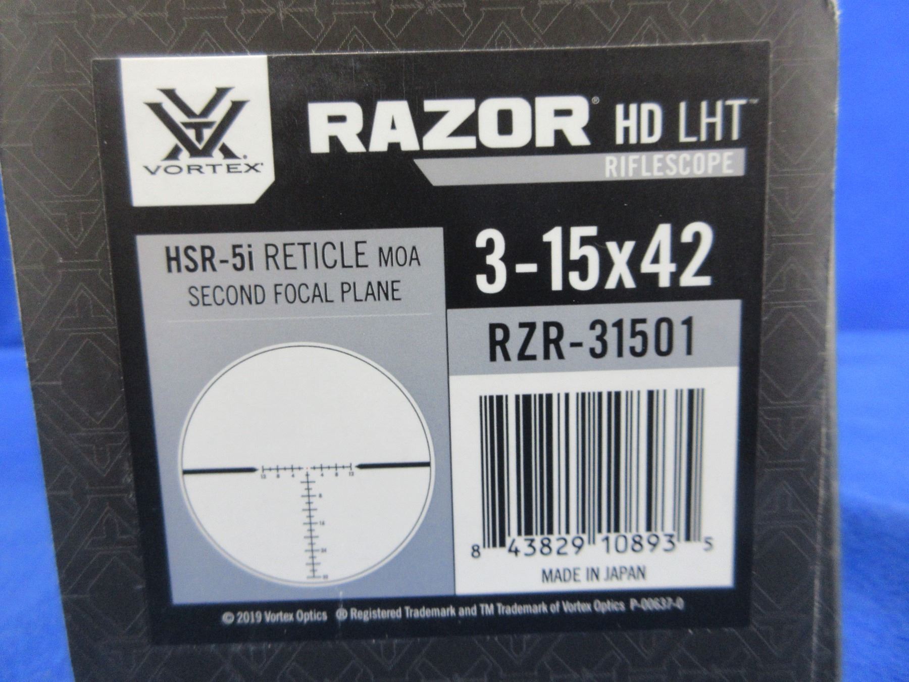NEW - Vortex Razor HD LHT 3-15x42 SFP Scope - HSR-5i Reticle - Comes with Original Box, Lens Covers, Sun Shade and Manual