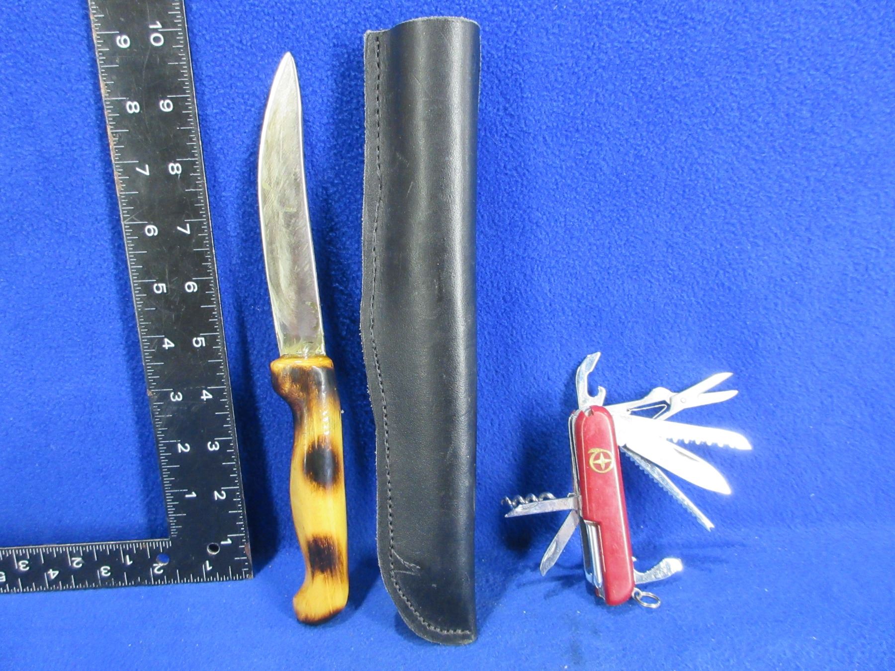 Fixed Blade Knife (5" Blade) with Sheath and a Swiss Style Folding Knife