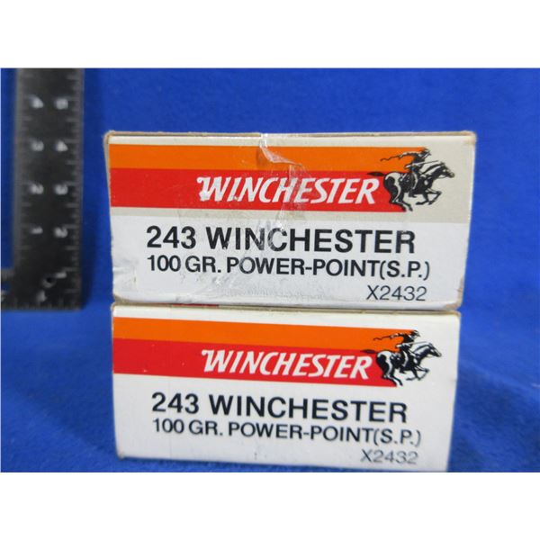 243 Win. 100gr PP Winchester (Pick Up or Ship by UPS Only) Cartridges - Box of 20, Box of 11 + 9 Brass