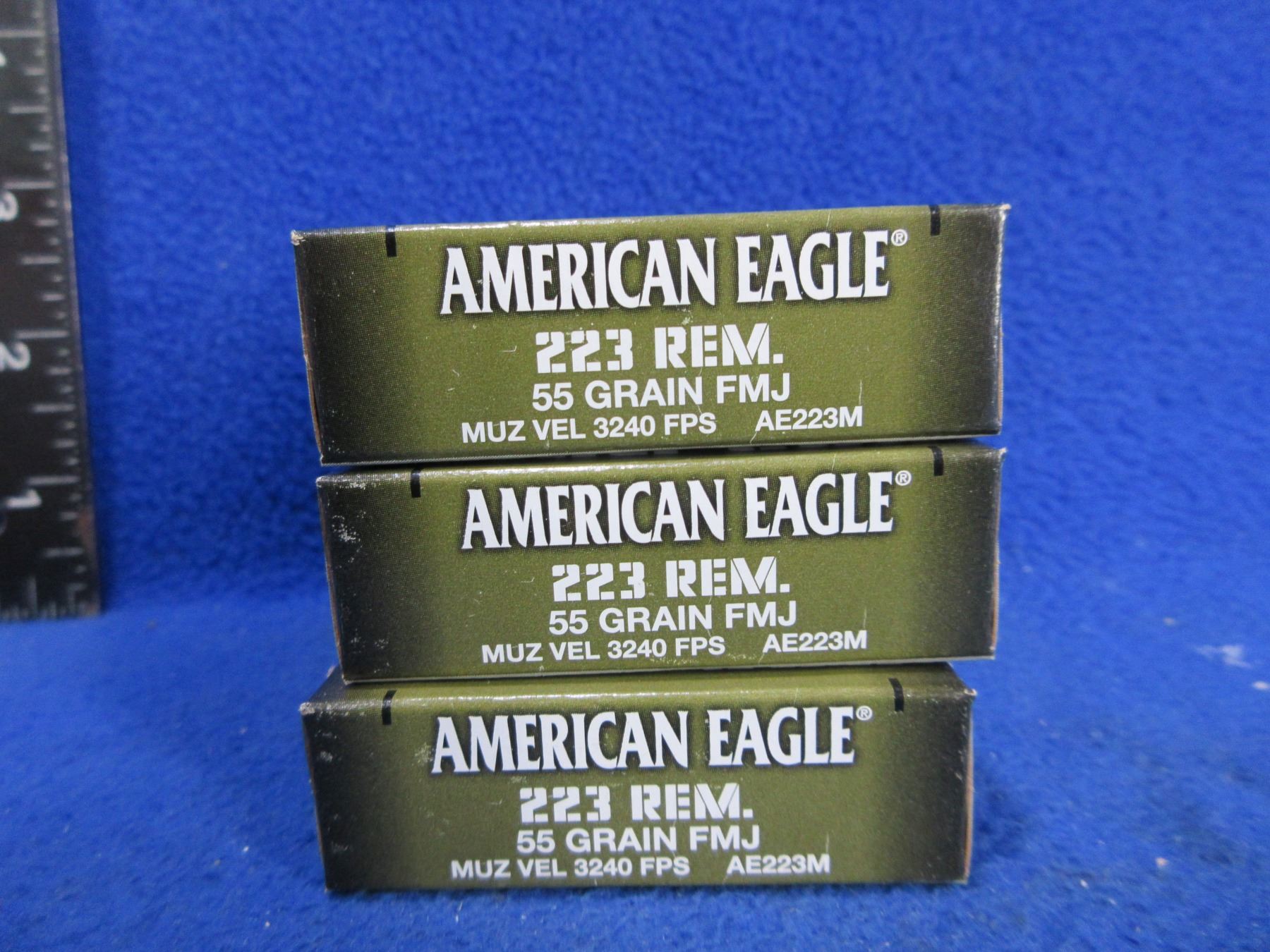 223 Rem. 55gr FMJ Federal American Eagle Cartridges (Pick Up or Ship by UPS Only) - 3 Sealed Boxes of 20