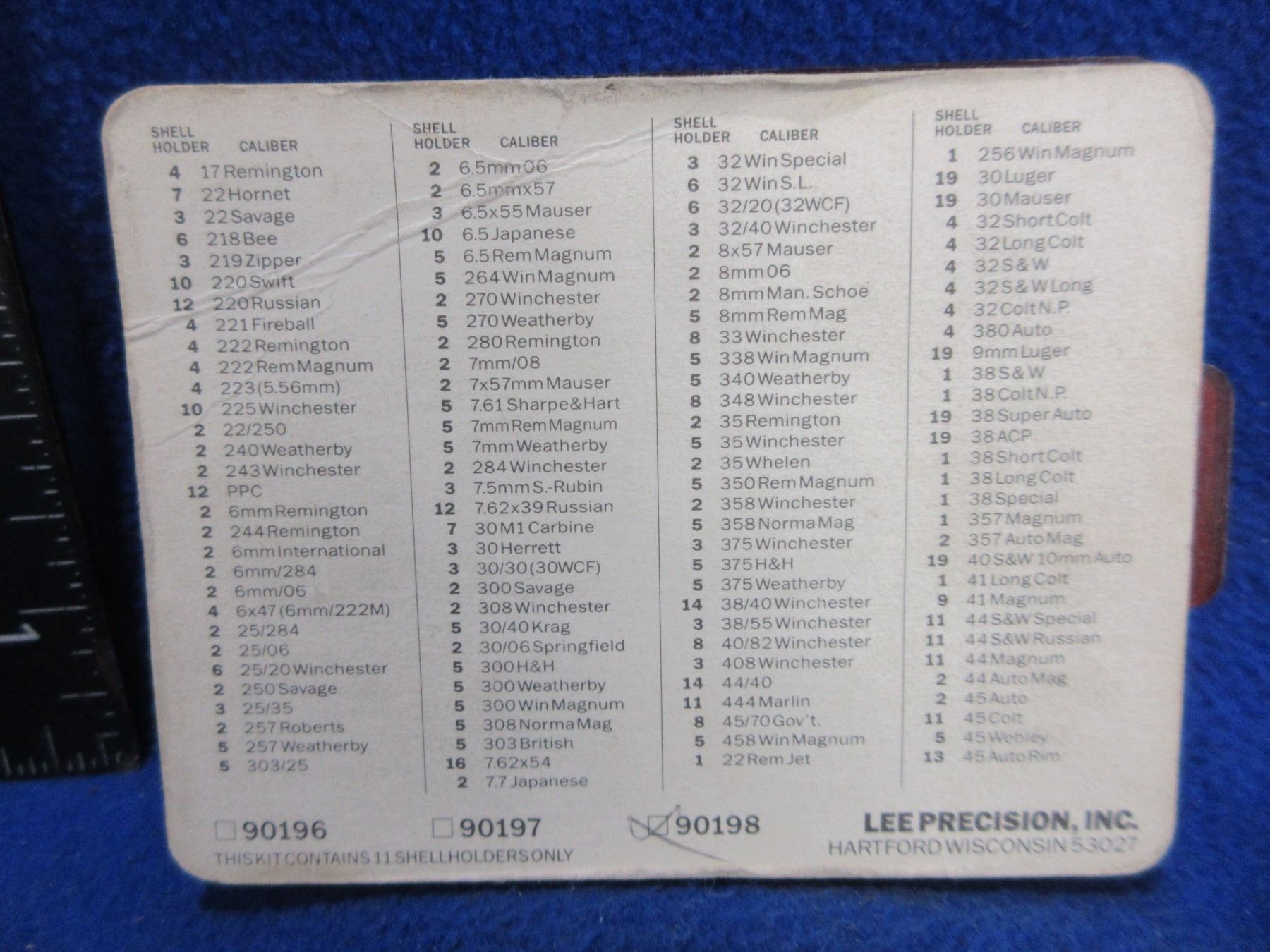 Lot 1138 Lee Auto Prime Shell Holder Set - #'s 1, 2, 3, 4, 5, 6, 8, 10, 11