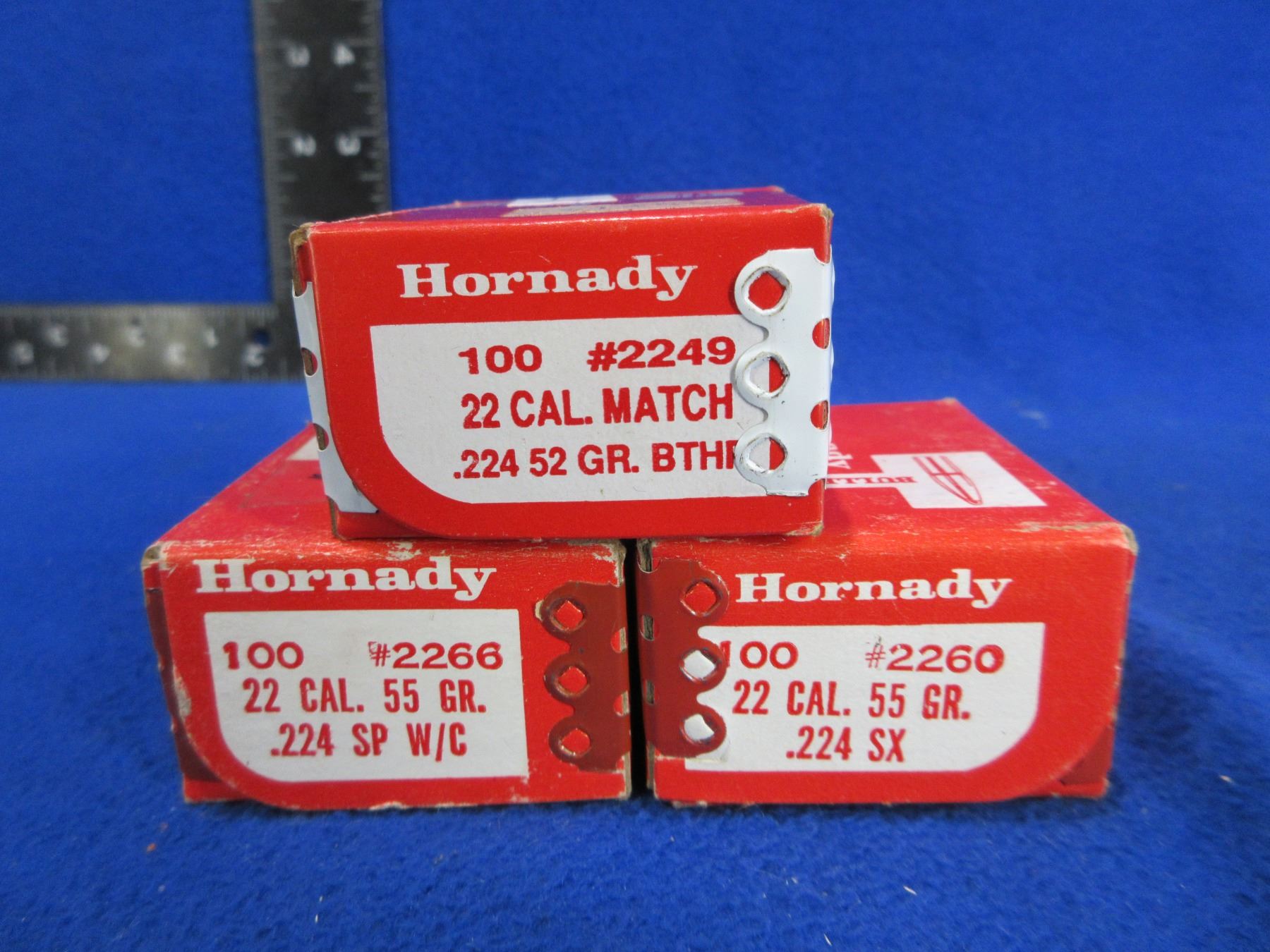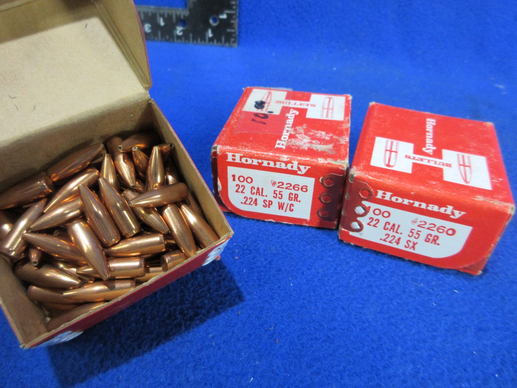 22 Cal. .224" Hornady Bullets - Sealed Box of 100 (55gr SX), Sealed Box of 100 (55gr SP W/C), Box of 65 (52gr BTHP Match)