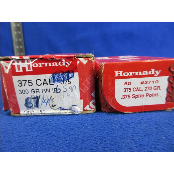 375 Cal. .375" Hornady Bullets - Box of 21 (300gr RN IB), Box of 12 (270gr Spire Point)