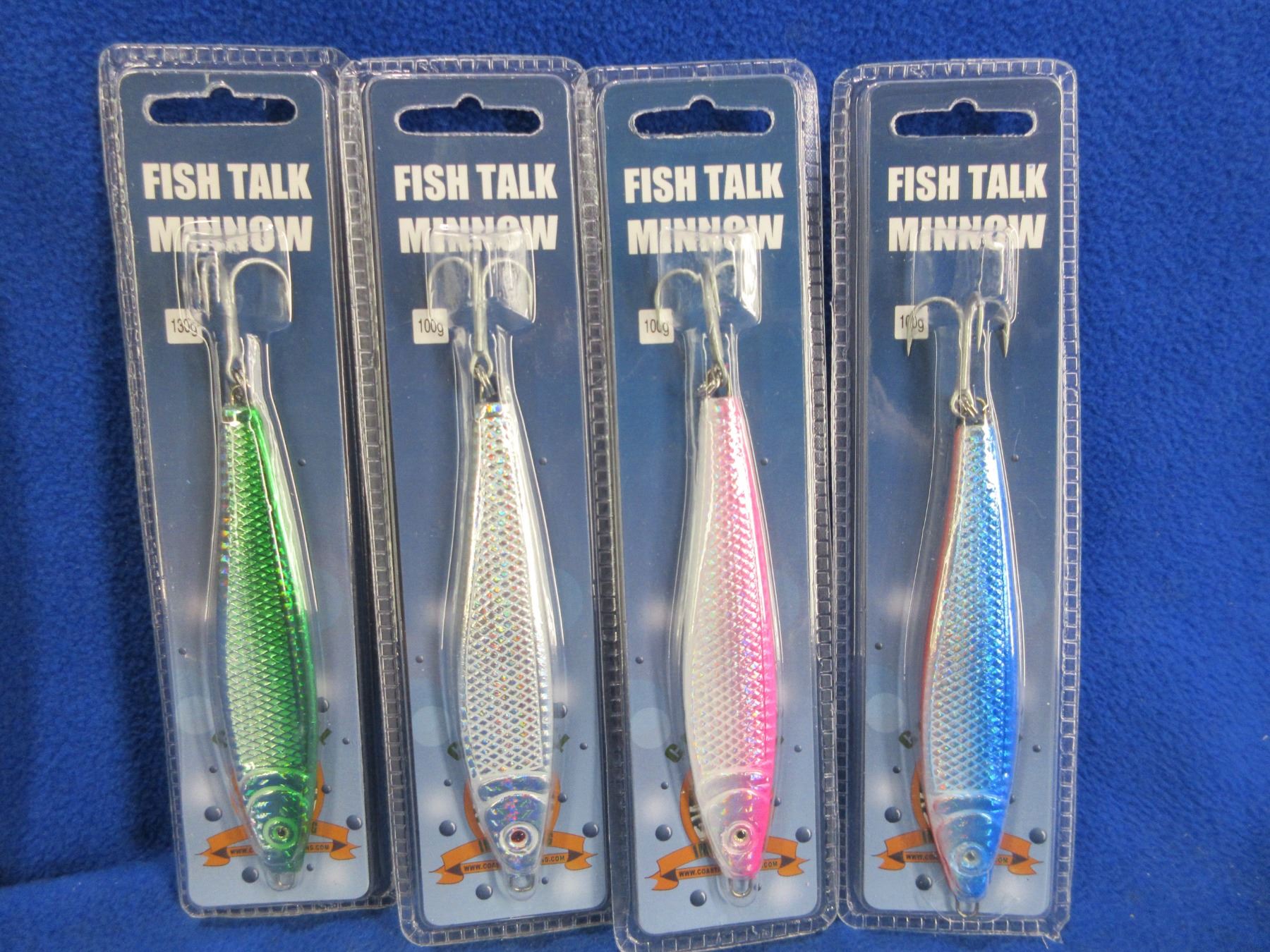 Lot 1168 NEW - 4 Fish Talk Minnow Lures - Assorted Colors, 100g & 130g