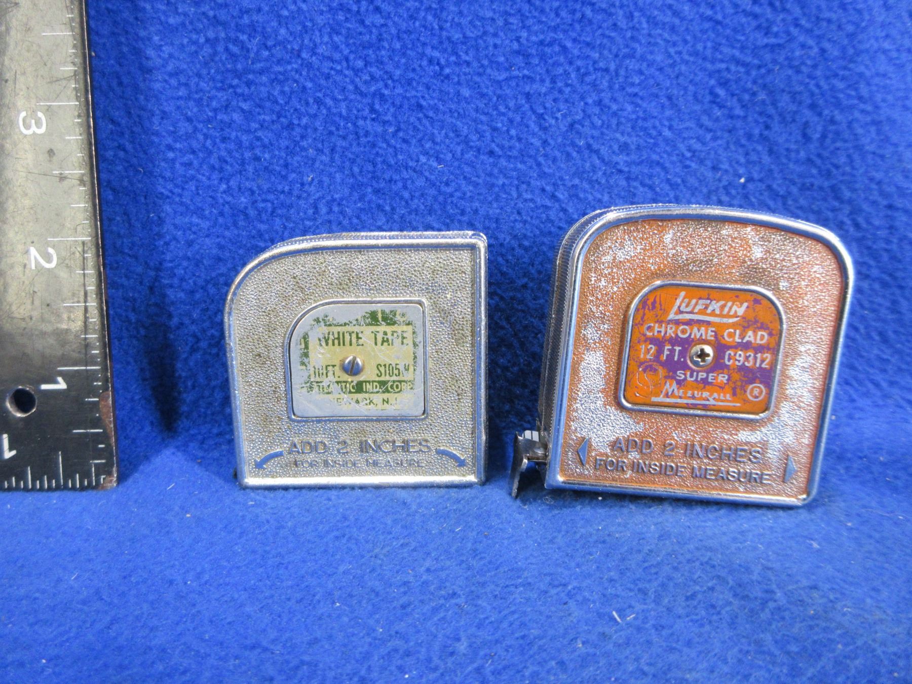 2 Vintage Tape Measures - Atlantic White Tape 10', Lufkin Chrome Clad 12' - Lufkin is Made in Canada, Atlantic is Made in USA - Both are in working condition