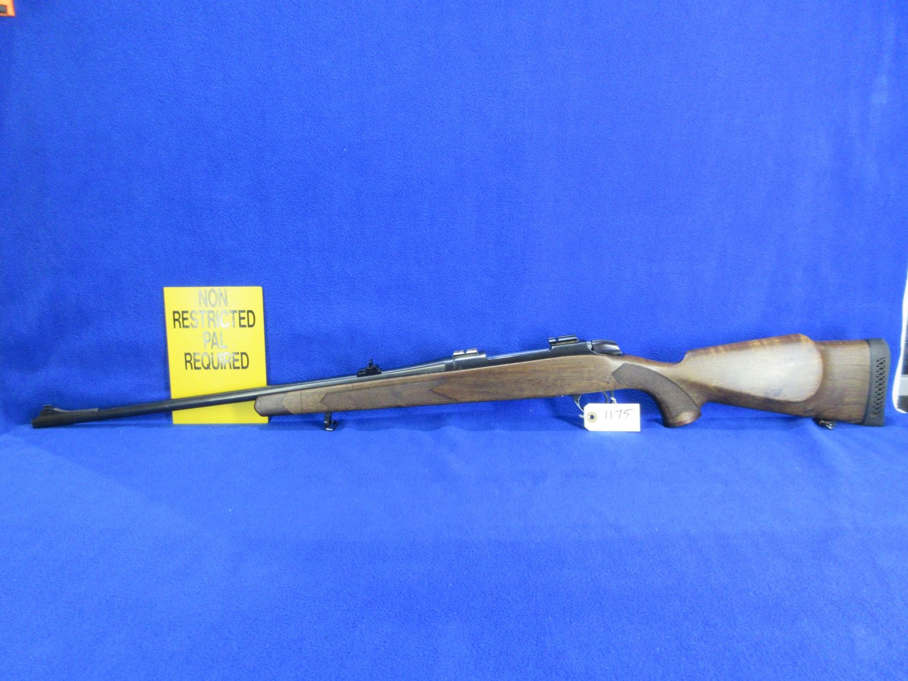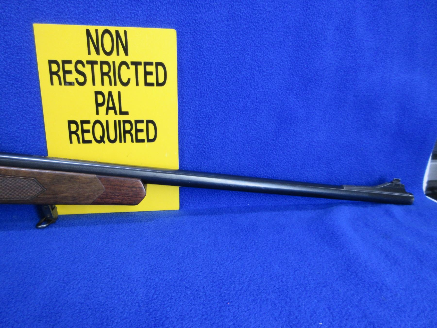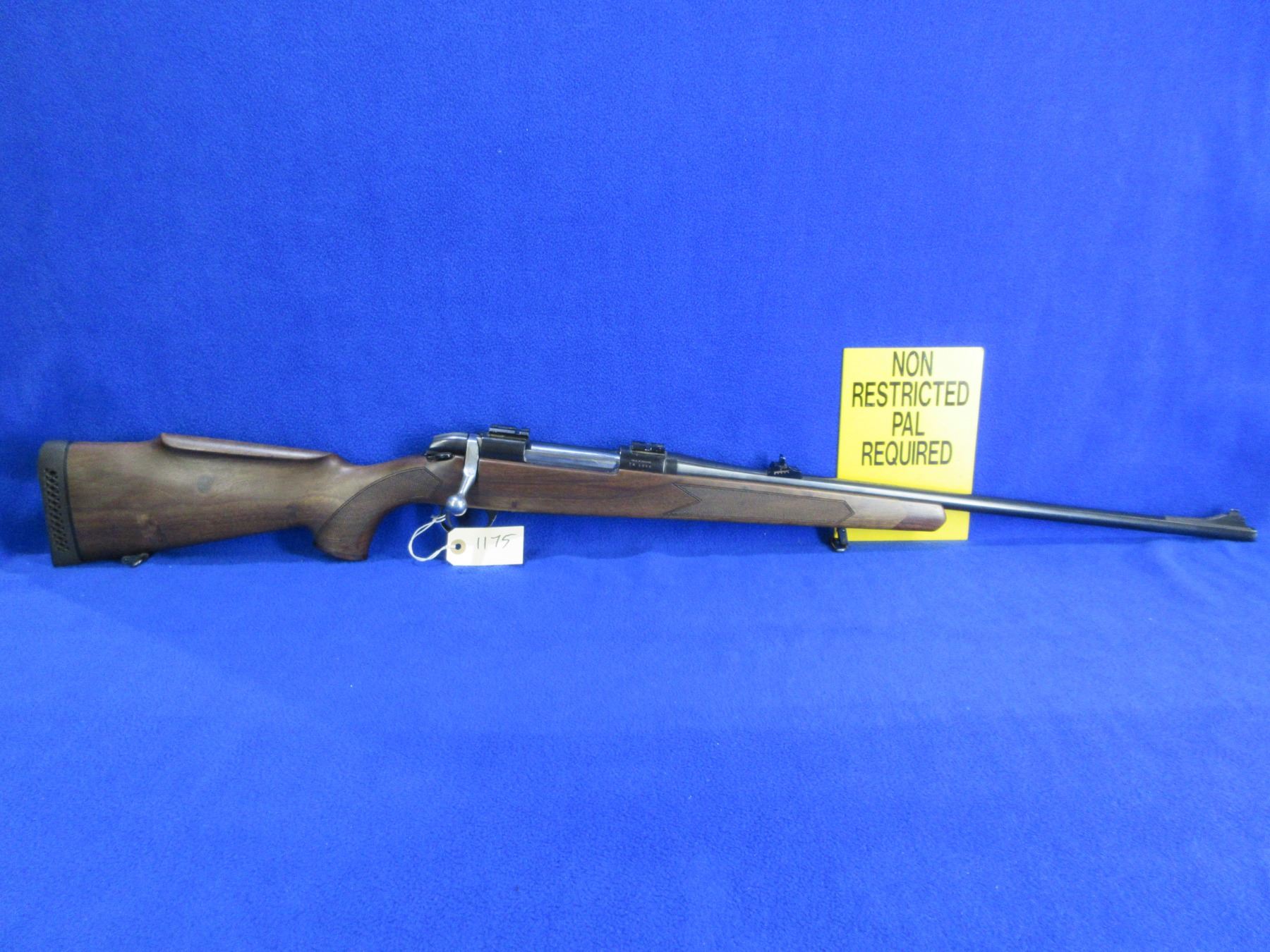 Non-Restricted - BSA in 30-06 Sprg - Nice grain on this one - This is a bolt action rifle with floorplate magazine, action appears to be in good to very good working order. Barrel is 24", rifling is good to very good, bluing is good to very good, has both sights and Weaver style bases, stock is good to very good, rubber recoil pad good, comes with quick release swivels. Ser #7R5056