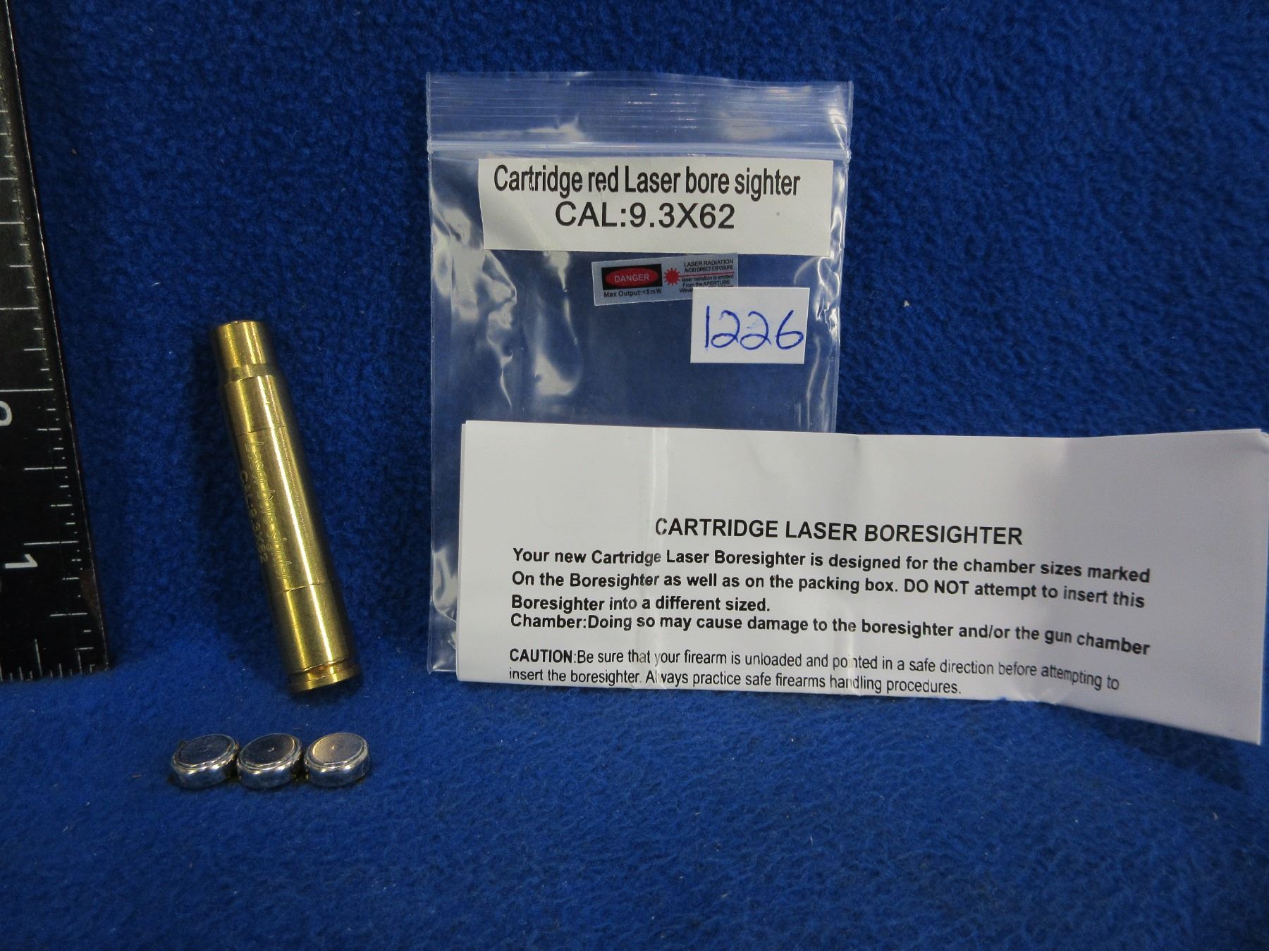 NEW - 9.3X62 Cartridge Red Laser Bore Sight with Batteries