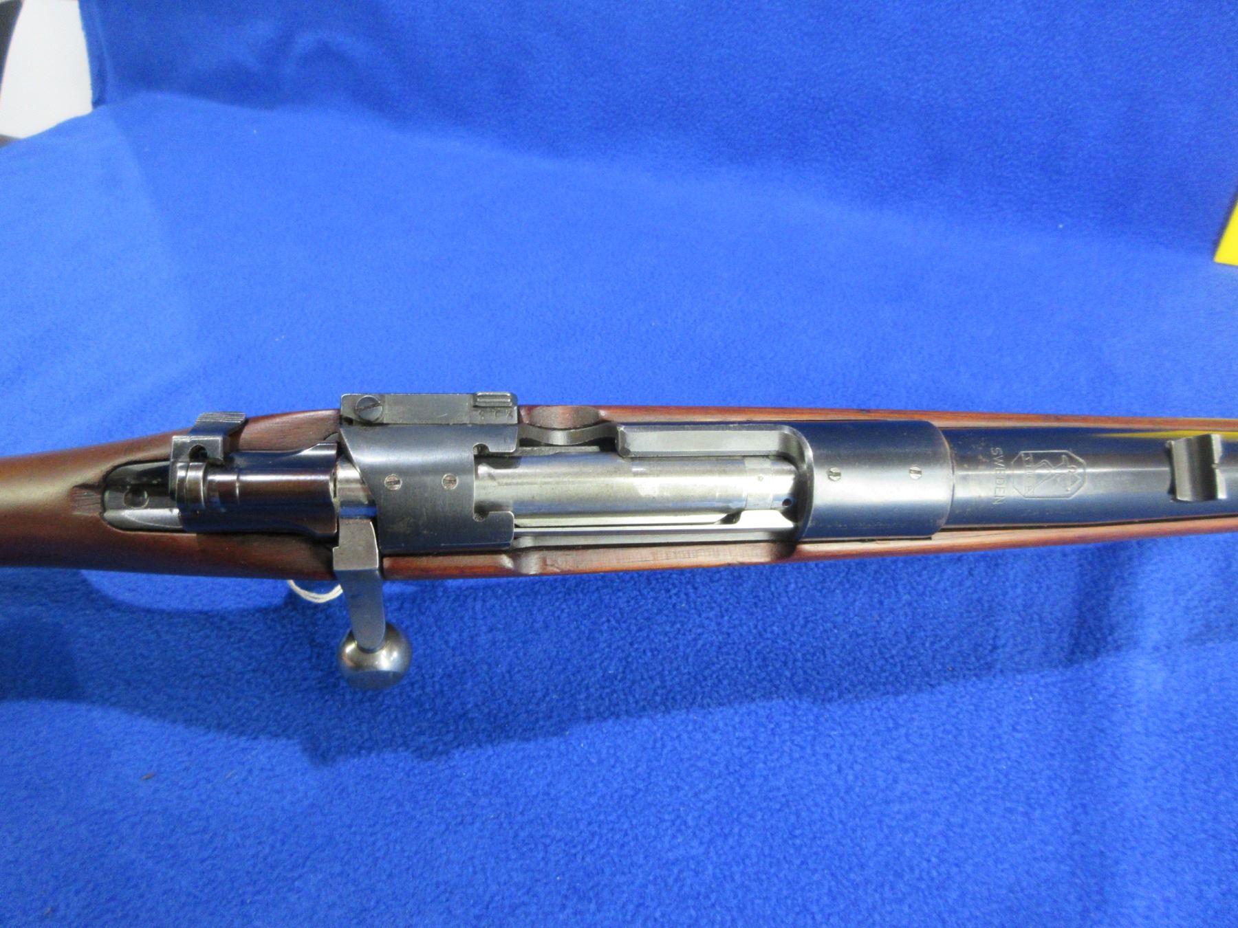 Non-Restricted - Stiga Model M96 in 30-06 Sprg - This nice clean gun is a bolt action rifle with floor plate magazine, action appears to be in good to very good working order. Barrel is 23 1/2", rifling is good to very good, bluing is good to very good, has both sights and is drilled and tapped, stock is good with usage marks, length of pull is 14", butt plate good, comes with rear swivel, front swivel stud missing. Ser # 87213