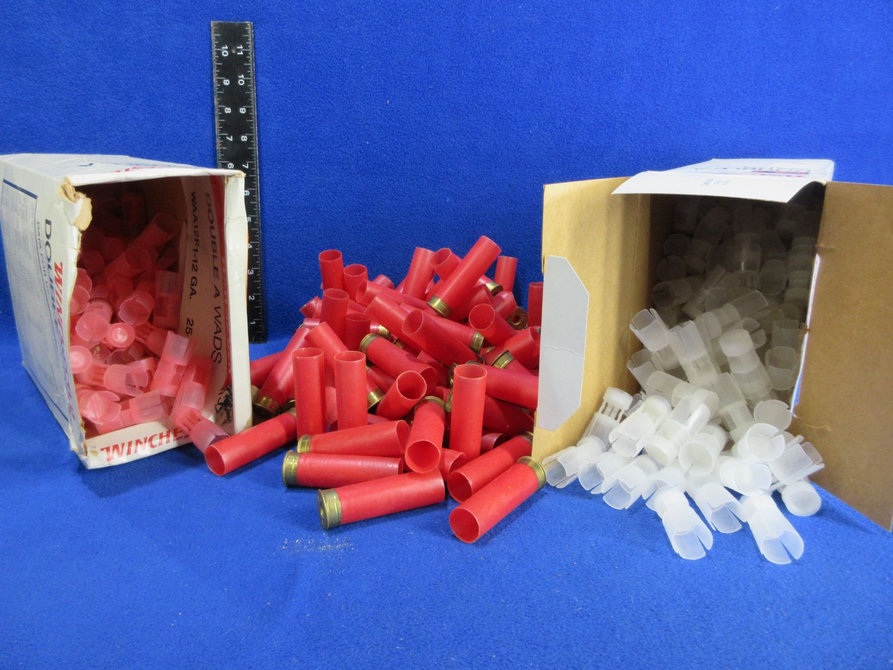 12 Gauge Winchester AA Wads and Unprimed New Hulls - Box of 250 (Wads), Box of Approx. 125 (Wads), Bag of Approx. 100 (Hulls)