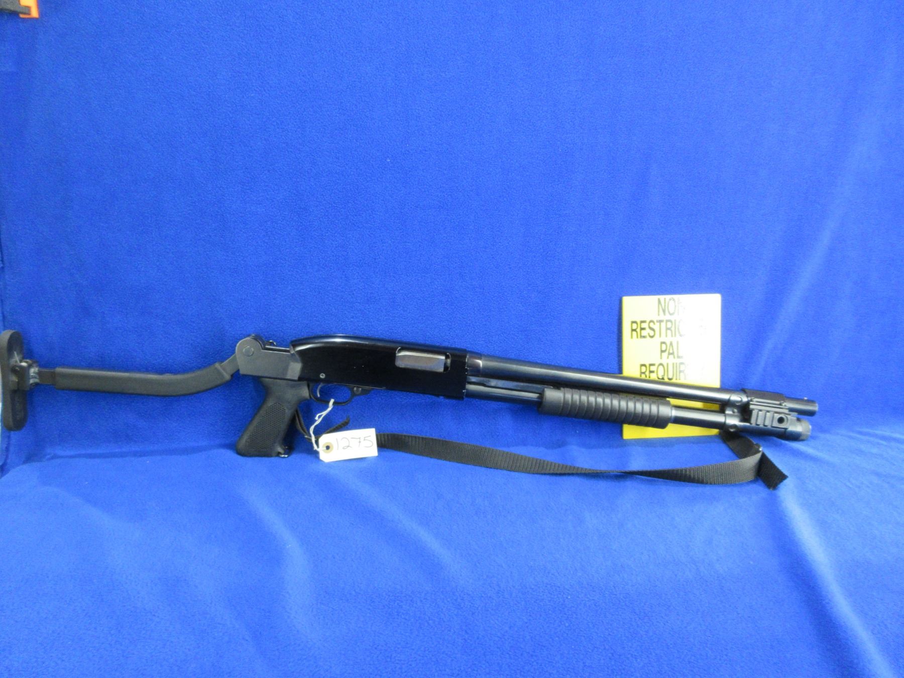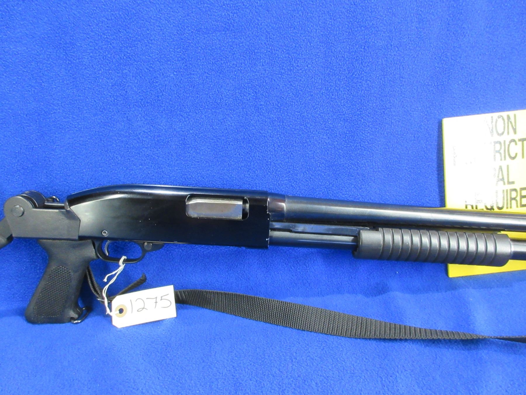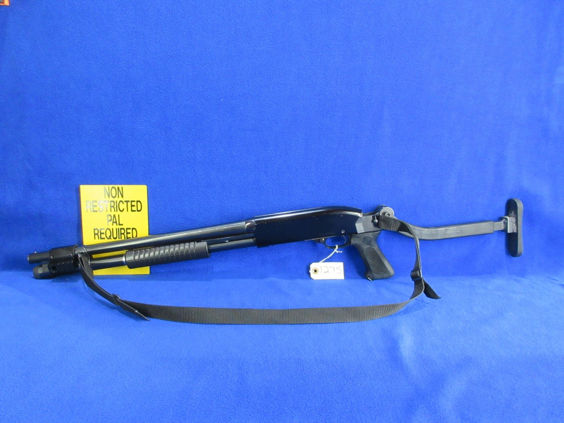 Non-Restricted - Winchester Defender in 12 Ga. 2 3/4" / 3"- This is an interesting pump action shotgun with tube magazine, action appears to be in good to very good working order. Barrel is 18 1/4", bore is good to very good, bluing is good to very good, has bead front sight, folding stock with pistol grip is good to very good, length of pull is 14 1/2", synthetic forearm is good to very good, rubber recoil pad good, comes with swivels, sling, extra pistol grip and picatinny side rails at muzzle. Ser # L2101406