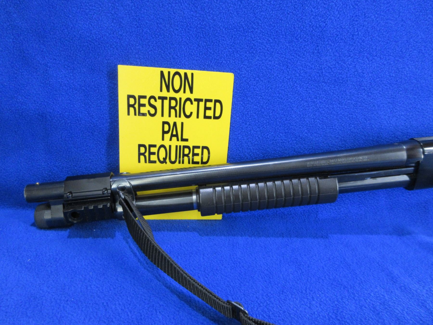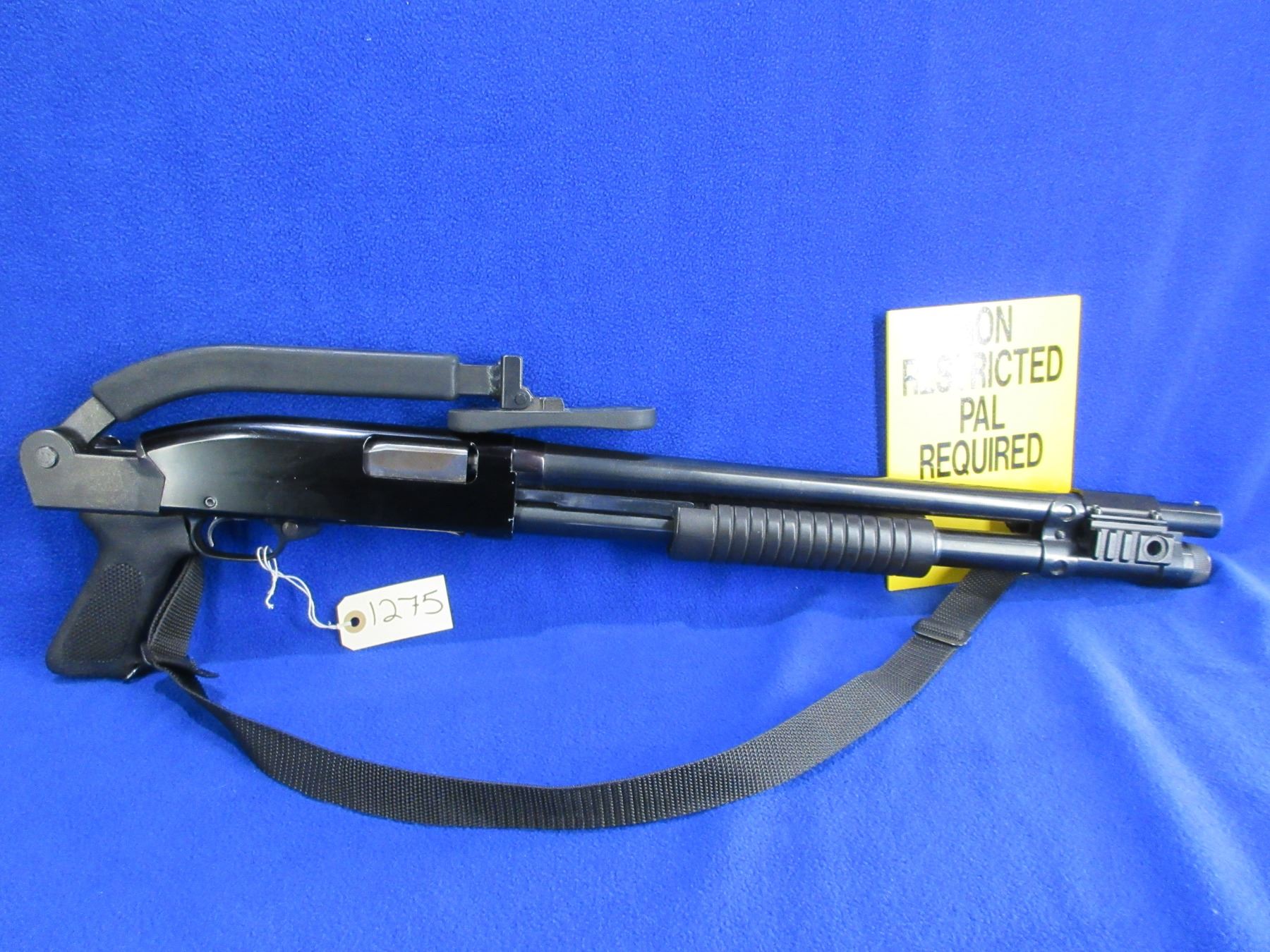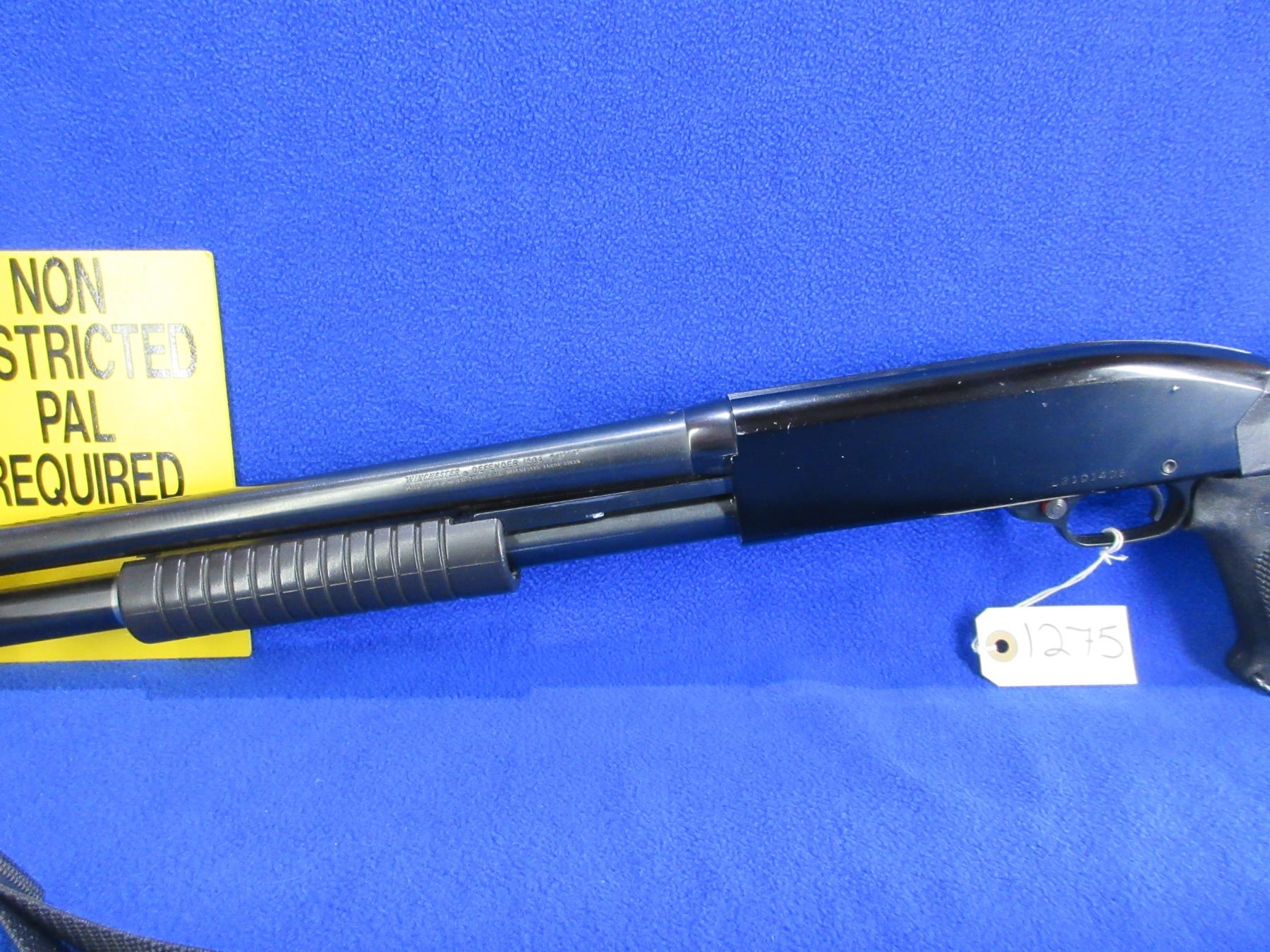 Non-Restricted - Winchester Defender in 12 Ga. 2 3/4" / 3"- This is an interesting pump action shotgun with tube magazine, action appears to be in good to very good working order. Barrel is 18 1/4", bore is good to very good, bluing is good to very good, has bead front sight, folding stock with pistol grip is good to very good, length of pull is 14 1/2", synthetic forearm is good to very good, rubber recoil pad good, comes with swivels, sling, extra pistol grip and picatinny side rails at muzzle. Ser # L2101406