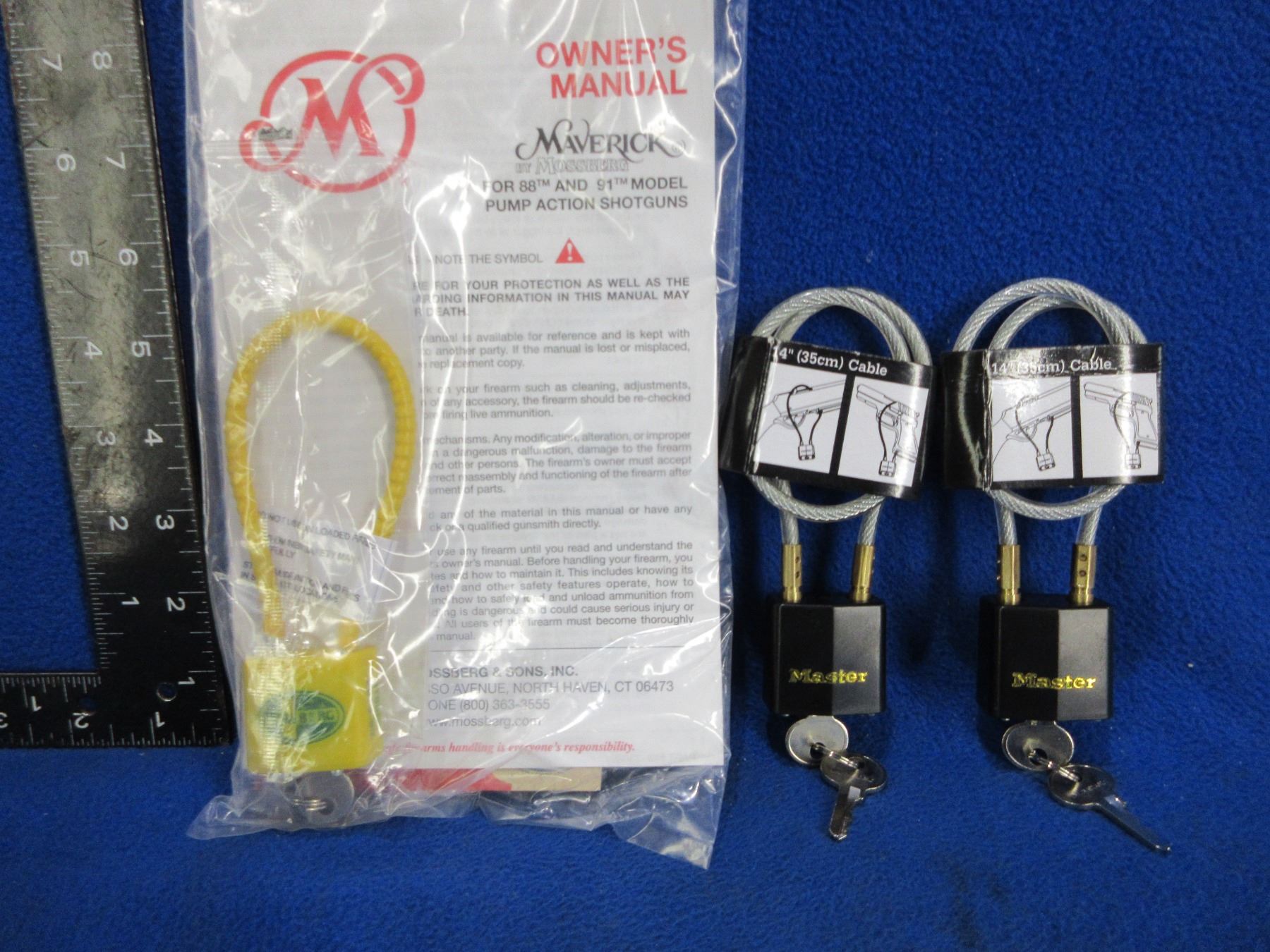 3 Cable Locks with 2 Keys Each and Mossberg Owners Manual