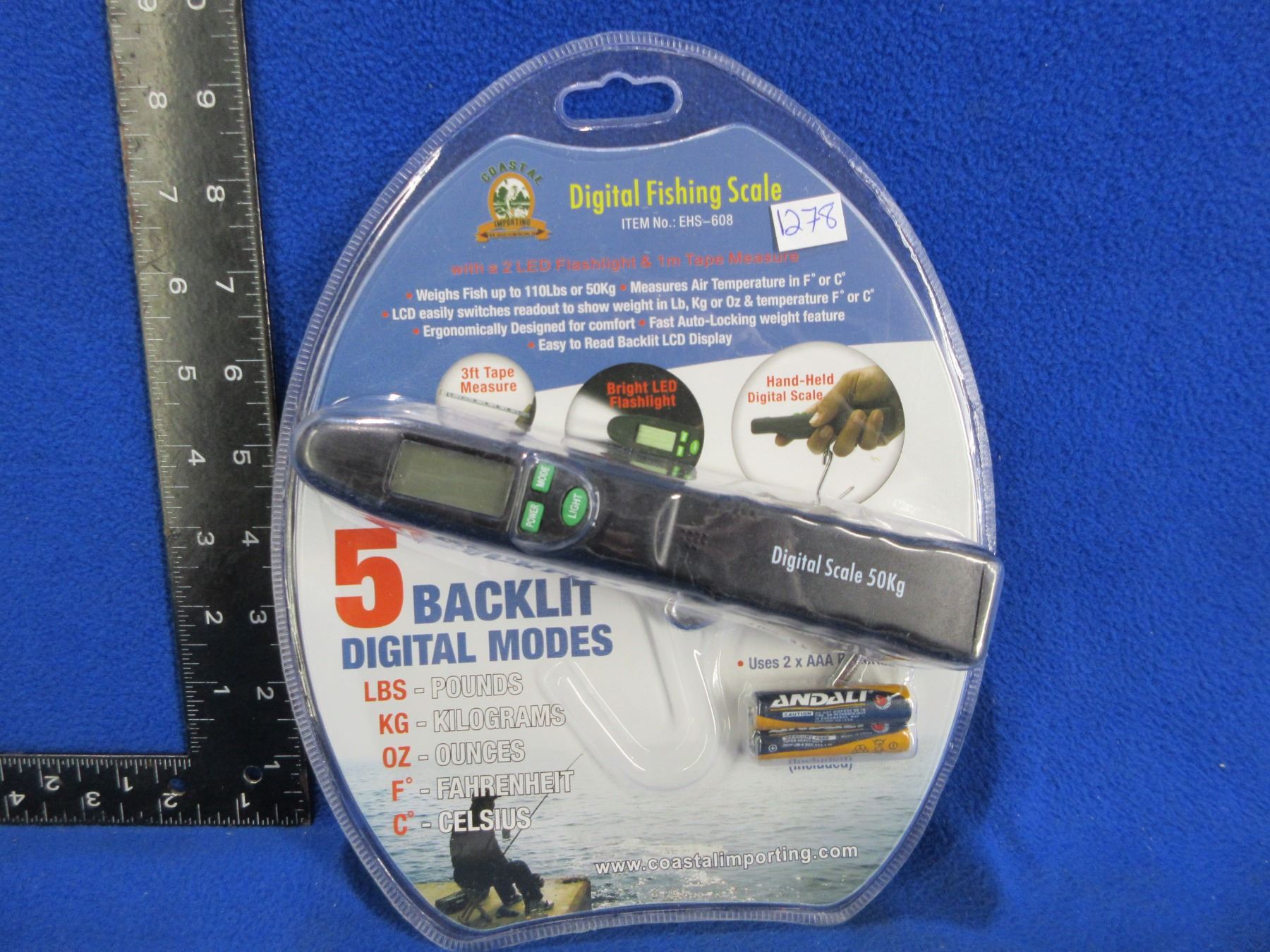 Lot 1278 NEW - Coastal Importing Digital Fishing Scale w/ Flashlight & Tape Measure