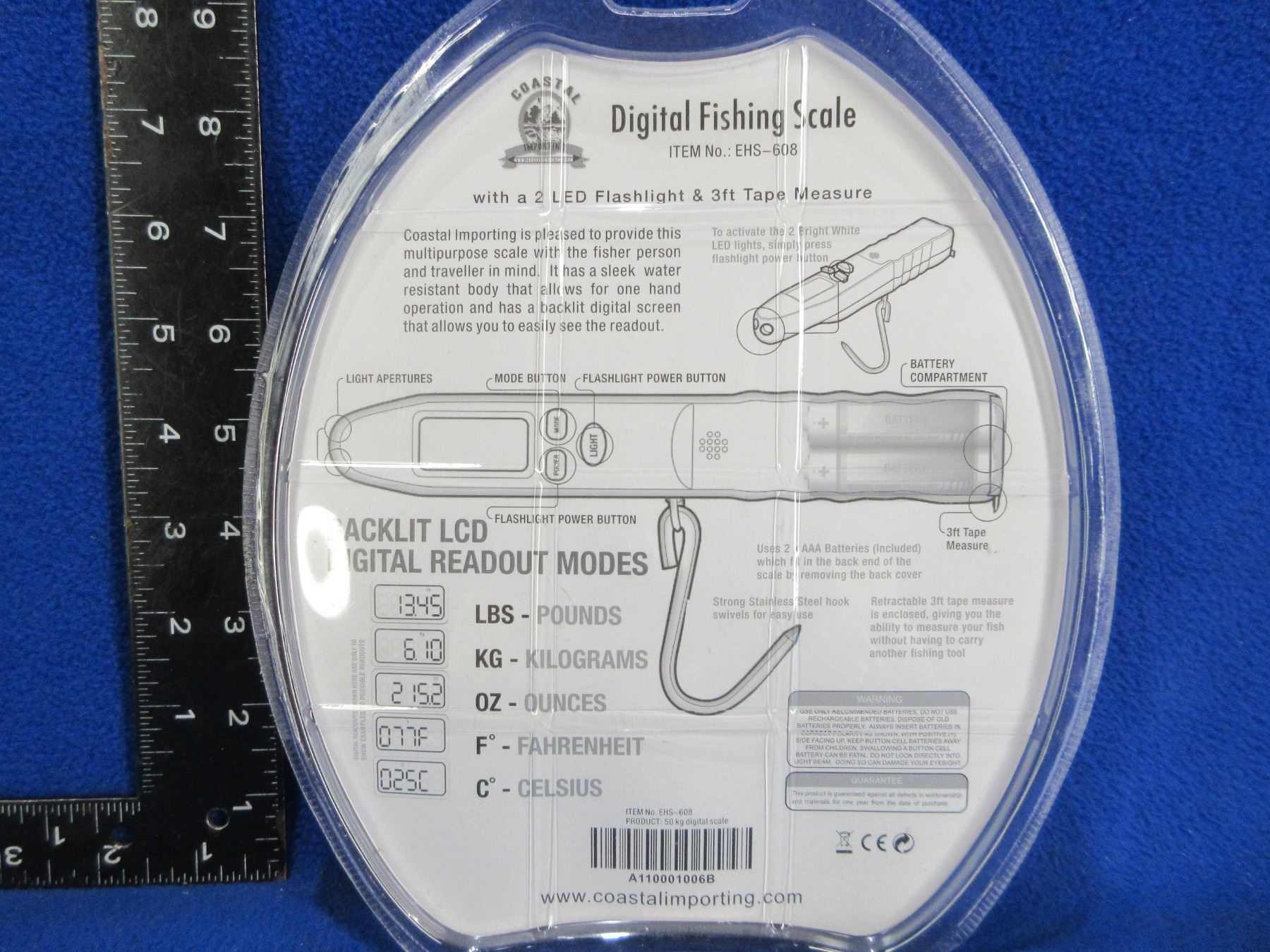 NEW - Coastal Importing Digital Fishing Scale w/ Flashlight & Tape Measure