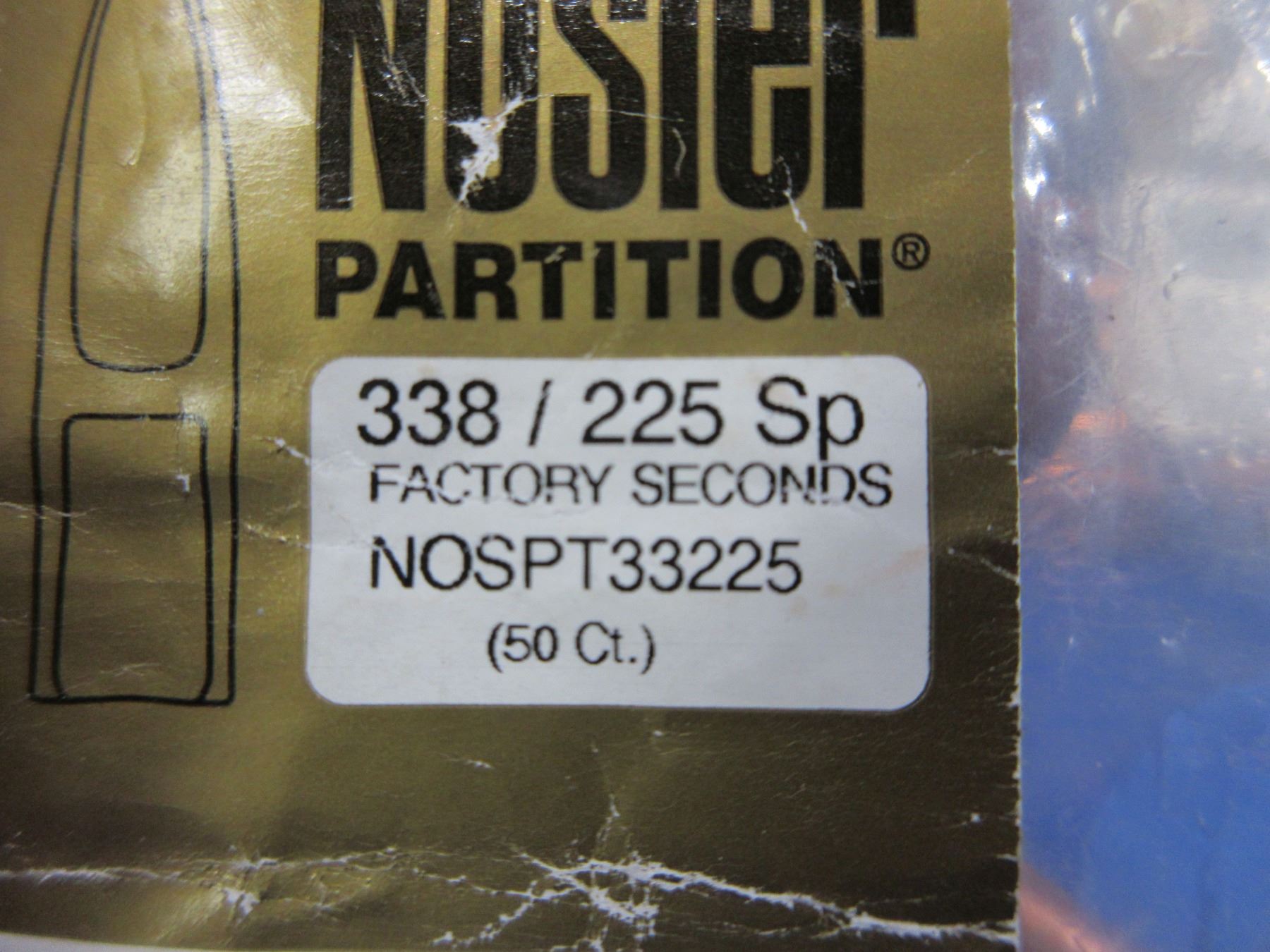 338 Cal. .338" 225gr SP Nosler Partition Bullets - 2 Sealed Bags of 50