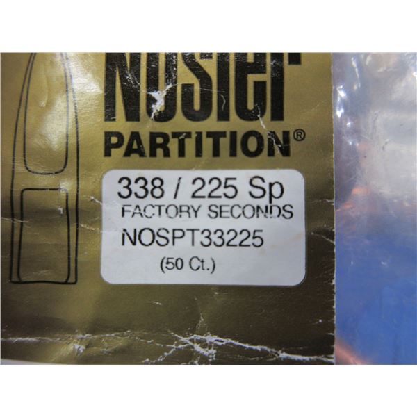 338 Cal. .338" 225gr SP Nosler Partition Bullets - 2 Sealed Bags of 50