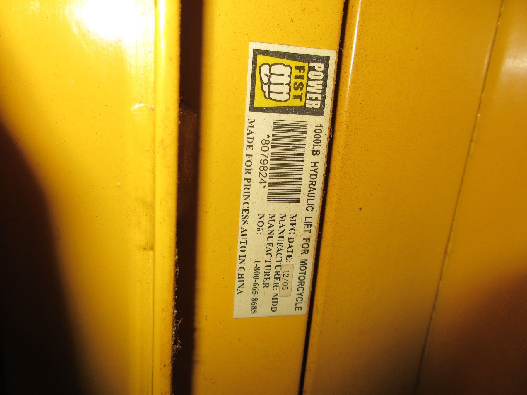 Power Fist 1000 lb Hydraulic Motorcycle Lift - PICK UP ONLY - Appears in Good Working Condition