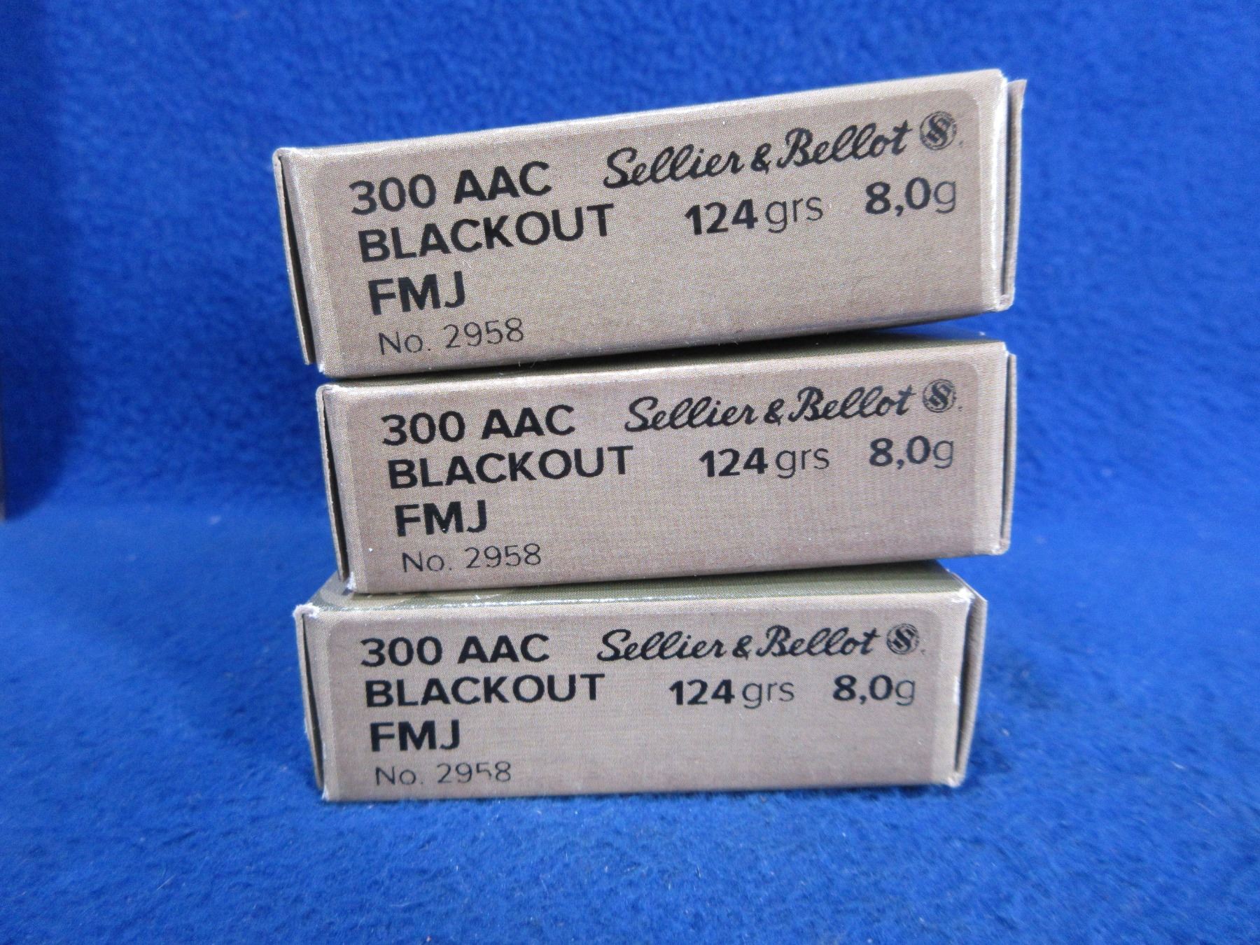 300 AAC Blackout 124gr FMJ (Pick Up or Ship by UPS Only) Sellier & Bellot Cartridges - 3 Boxes of 20