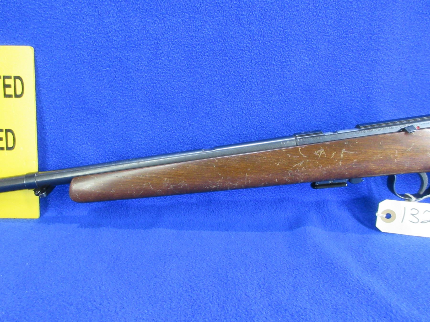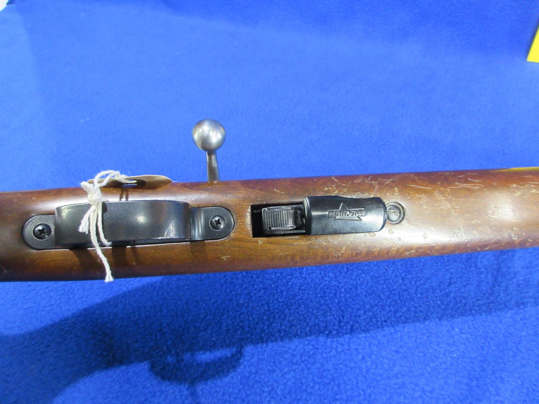 Non-Restricted - Anschutz Model 1400 in 22 LR - Made in West Germany, this is a bolt action rifle with removable magazine, action appears to be in good to very good working order. Barrel is 21 3/4", rifling is good to very good, bluing is good with some very light pitting, has front sight, rear sight missing but has integral rail, stock is good with usage marks, length of pull is 13 1/4", butt plate good, comes with swivels. Ser #757958