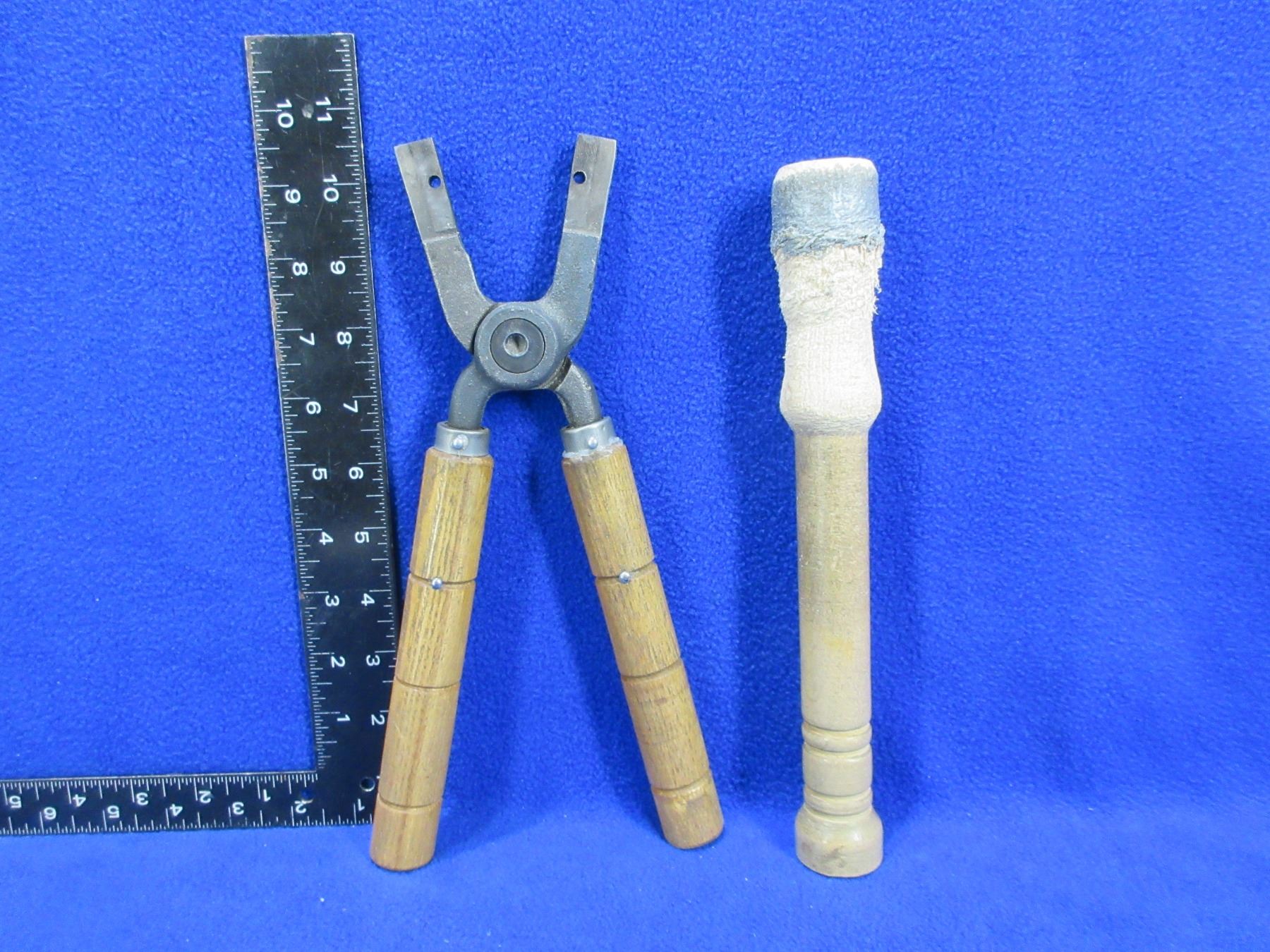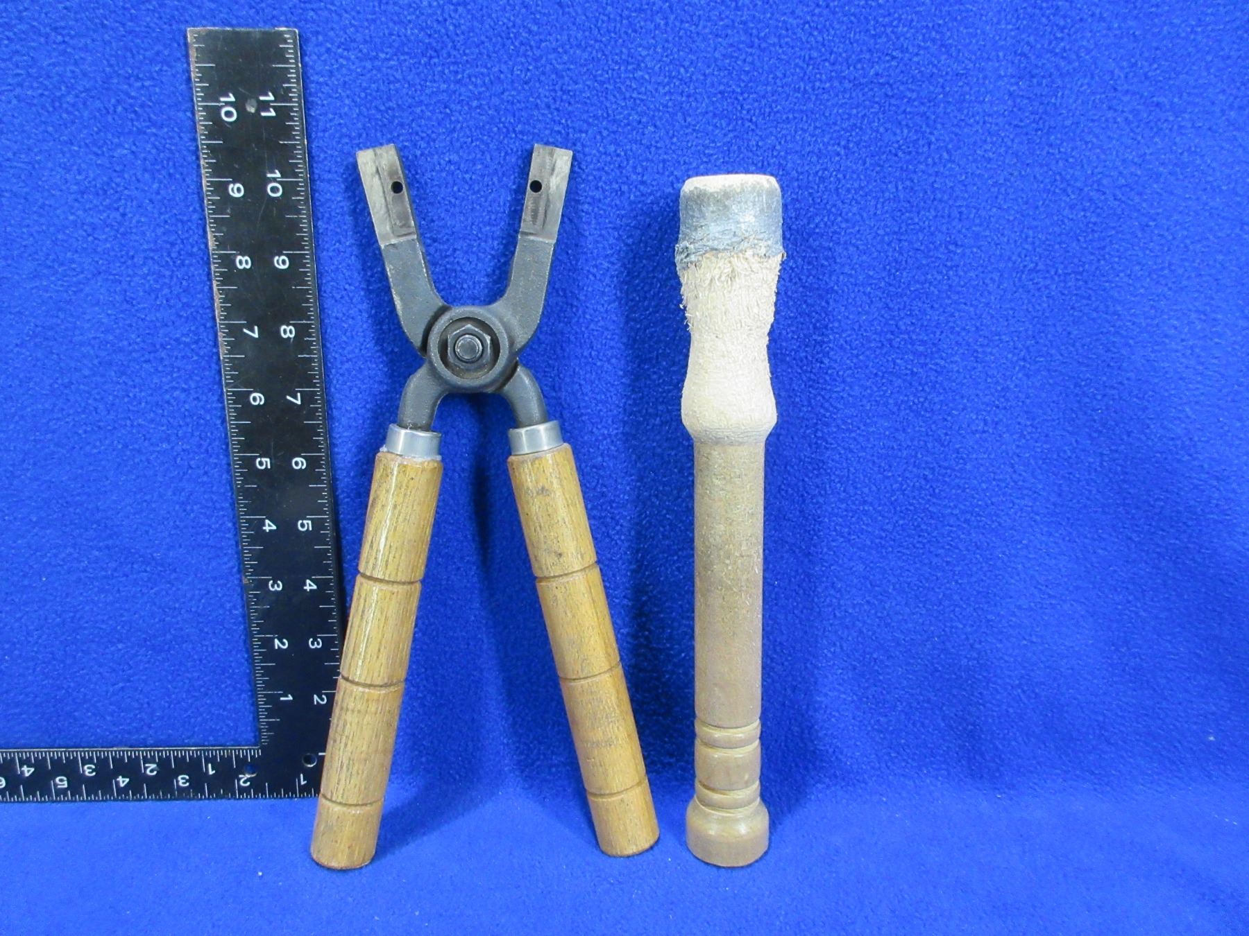 Lot 1331 Large Bullet Mold Handles and Wooden Mallet