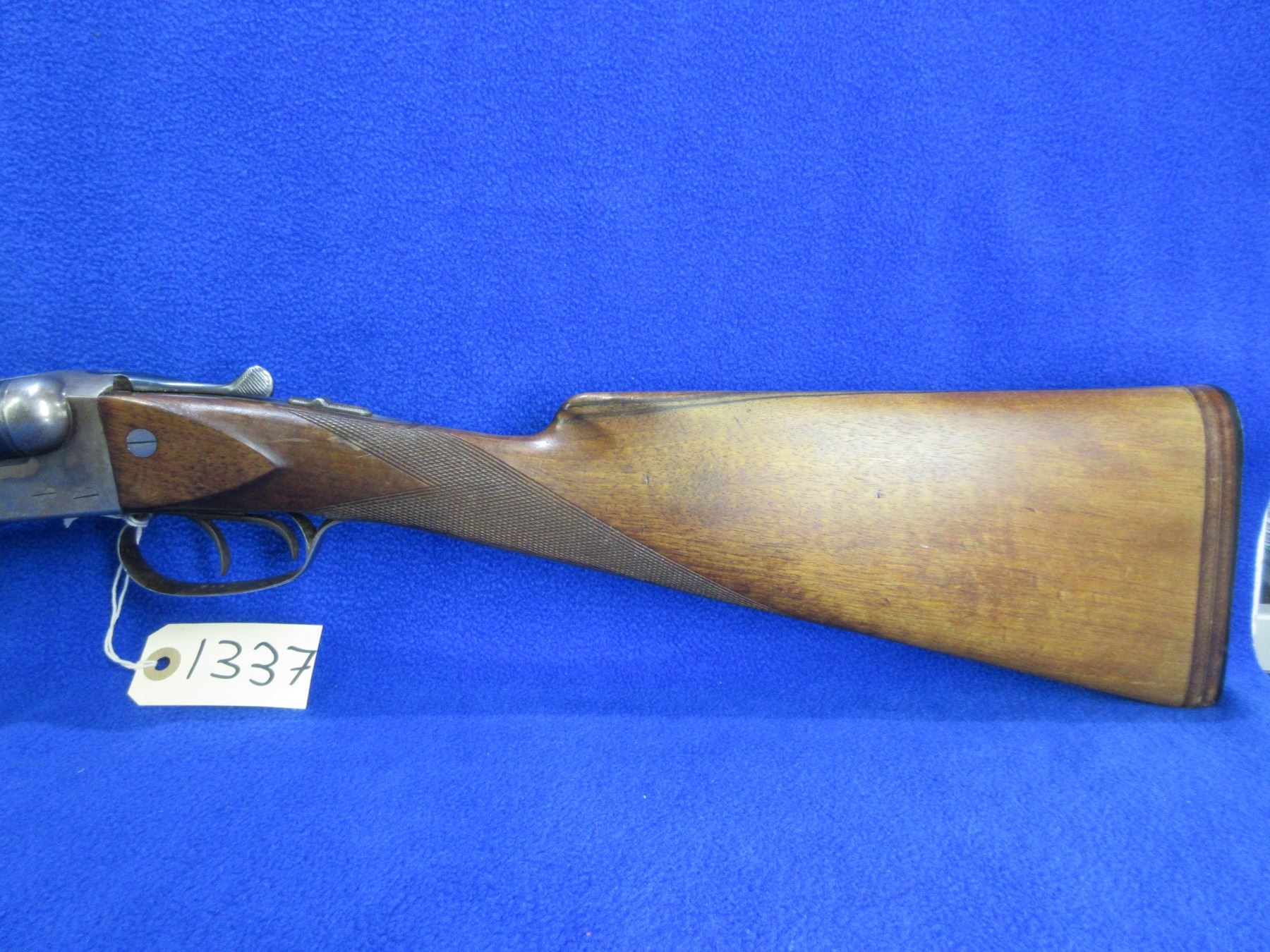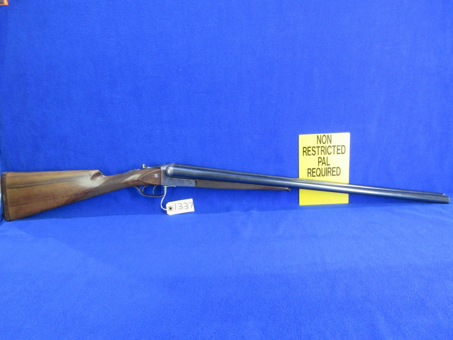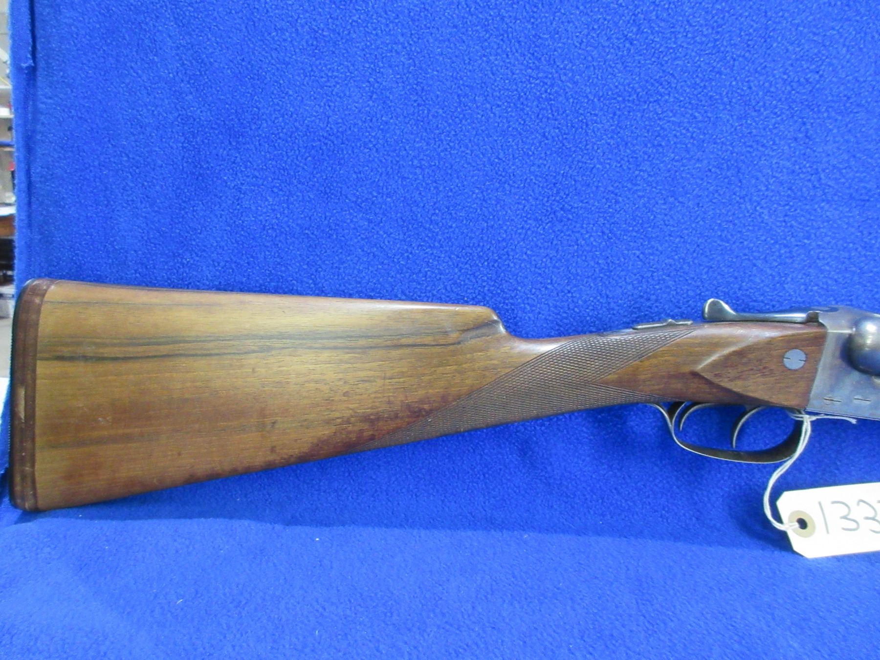 Non-Restricted - Husqvarna Model 610 in 12 Ga. 2 3/4" - This is a tip up SXS shotgun, case hardened action is tight and appears to be in good to very good working order. Barrels are 27 5/8", bores are good but left bore has a small dent approx 10" from muzzle, bluing is good with some light scratches, has bead front sight, stock has been lengthened and is good with usage marks and a drying crack at on the right side at the butt, length of pull is 15", forearm is good with usage marks, butt plate good. Ser # 234390