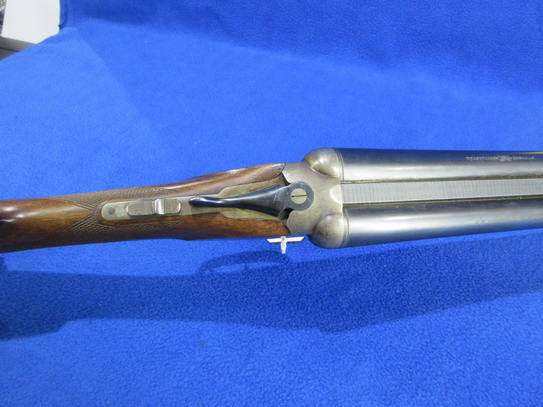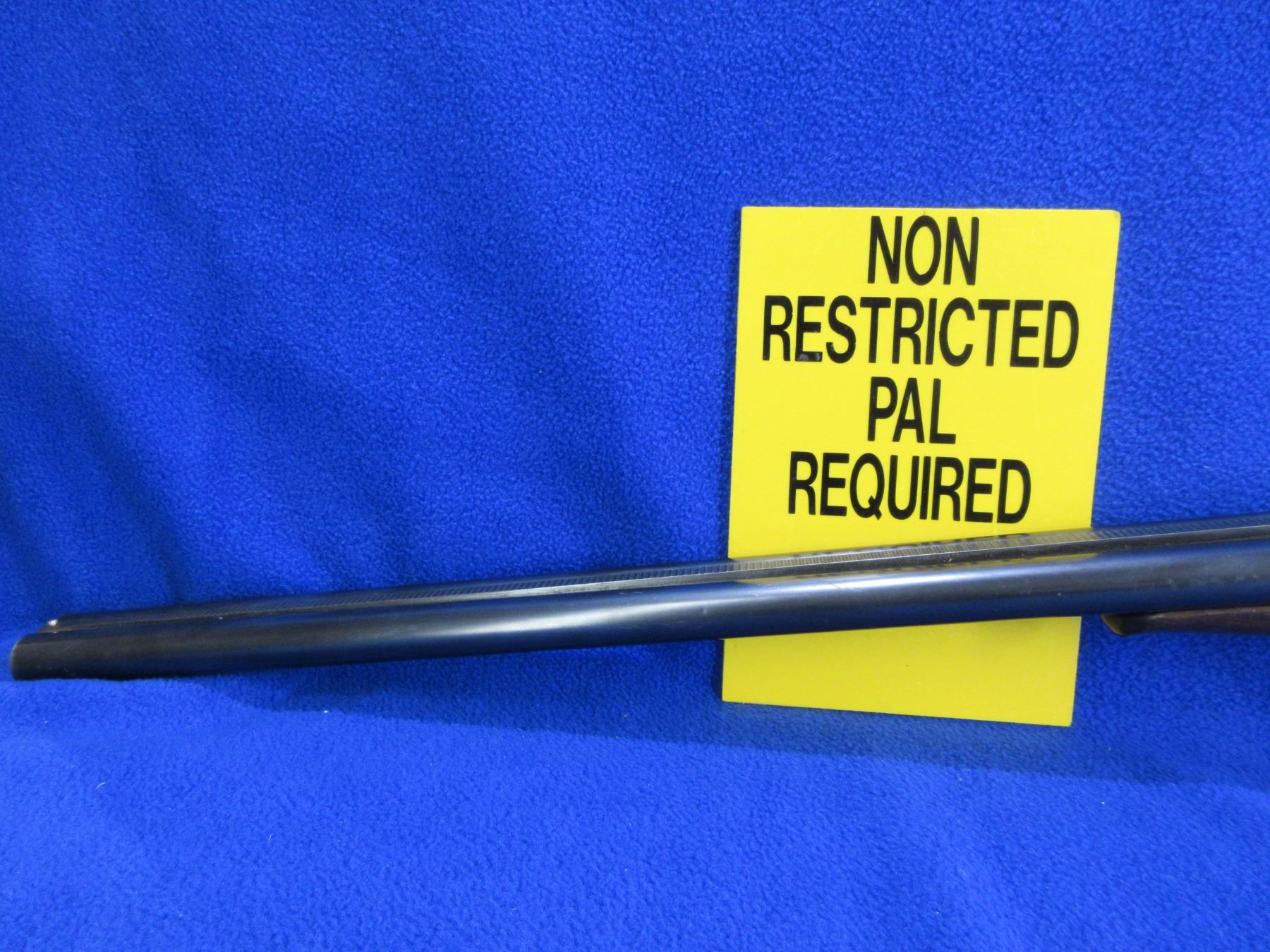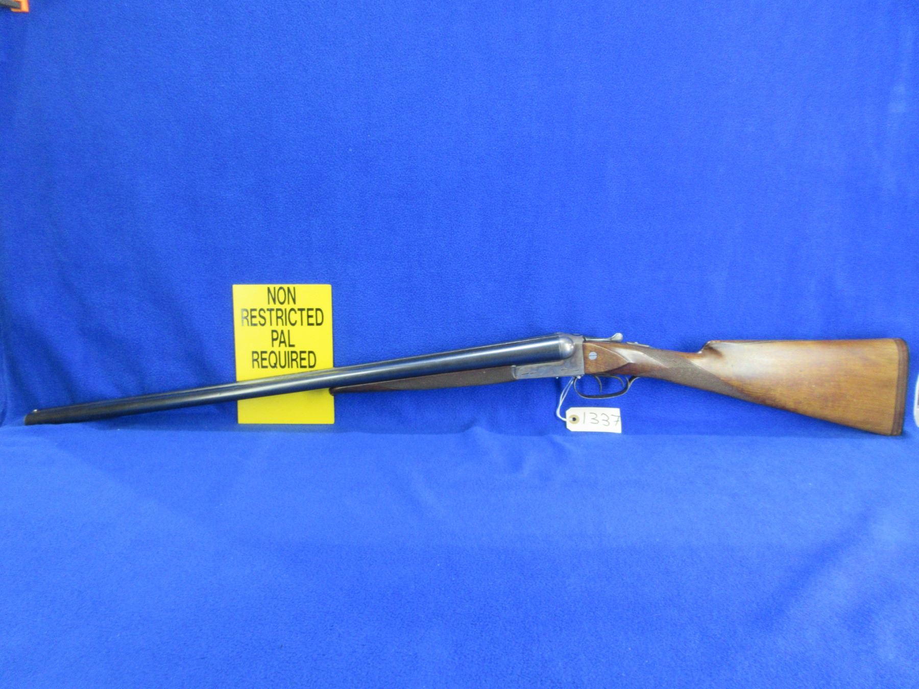 Non-Restricted - Husqvarna Model 610 in 12 Ga. 2 3/4" - This is a tip up SXS shotgun, case hardened action is tight and appears to be in good to very good working order. Barrels are 27 5/8", bores are good but left bore has a small dent approx 10" from muzzle, bluing is good with some light scratches, has bead front sight, stock has been lengthened and is good with usage marks and a drying crack at on the right side at the butt, length of pull is 15", forearm is good with usage marks, butt plate good. Ser # 234390