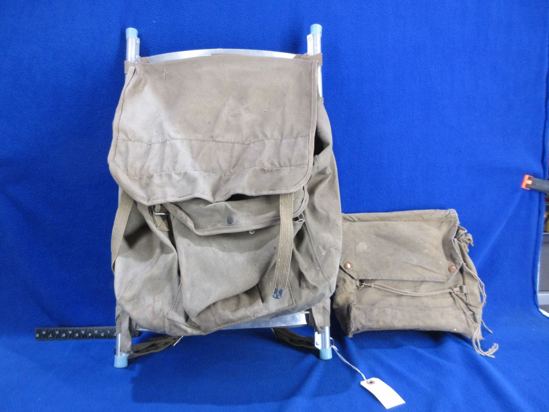 Lot 1340 Vintage Canvas Backpack with Frame and a Vintage Knapsack