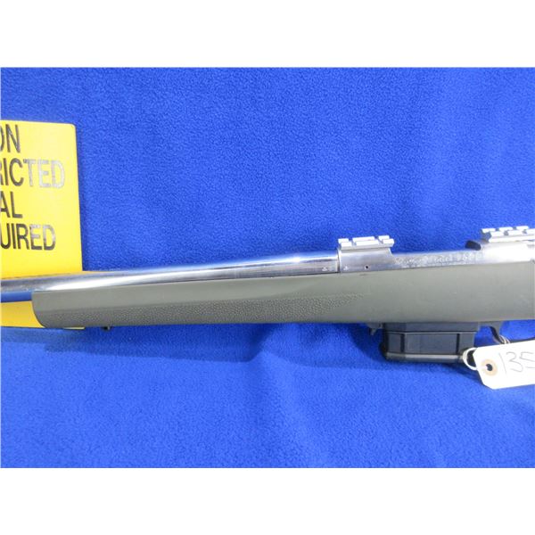 Non-Restricted - Howa Model 1500 in 243 Win - This is a bolt action rifle with removable magazine, action appears to be in good to very good working order. Heavy barrel is 24", thread cap missing, rifling is good to very good, Stainless finish is good with light scratches, has no sights but has Weaver style bases, synthetic stock is good with usage marks, length of pull is 14", rubber recoil pad good, comes with swivel studs. Ser #B154076