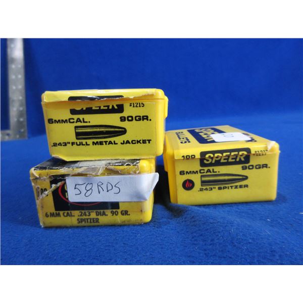6MM .243" 90gr Speer Bullets - Box of 58, 20 (Spitzer), Box of 20 (FMJ)
