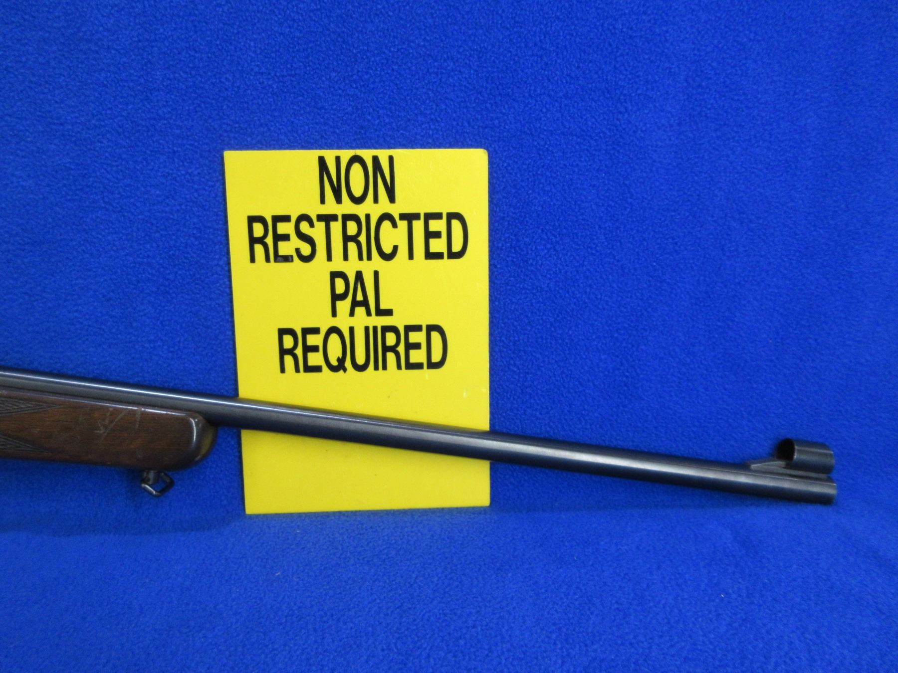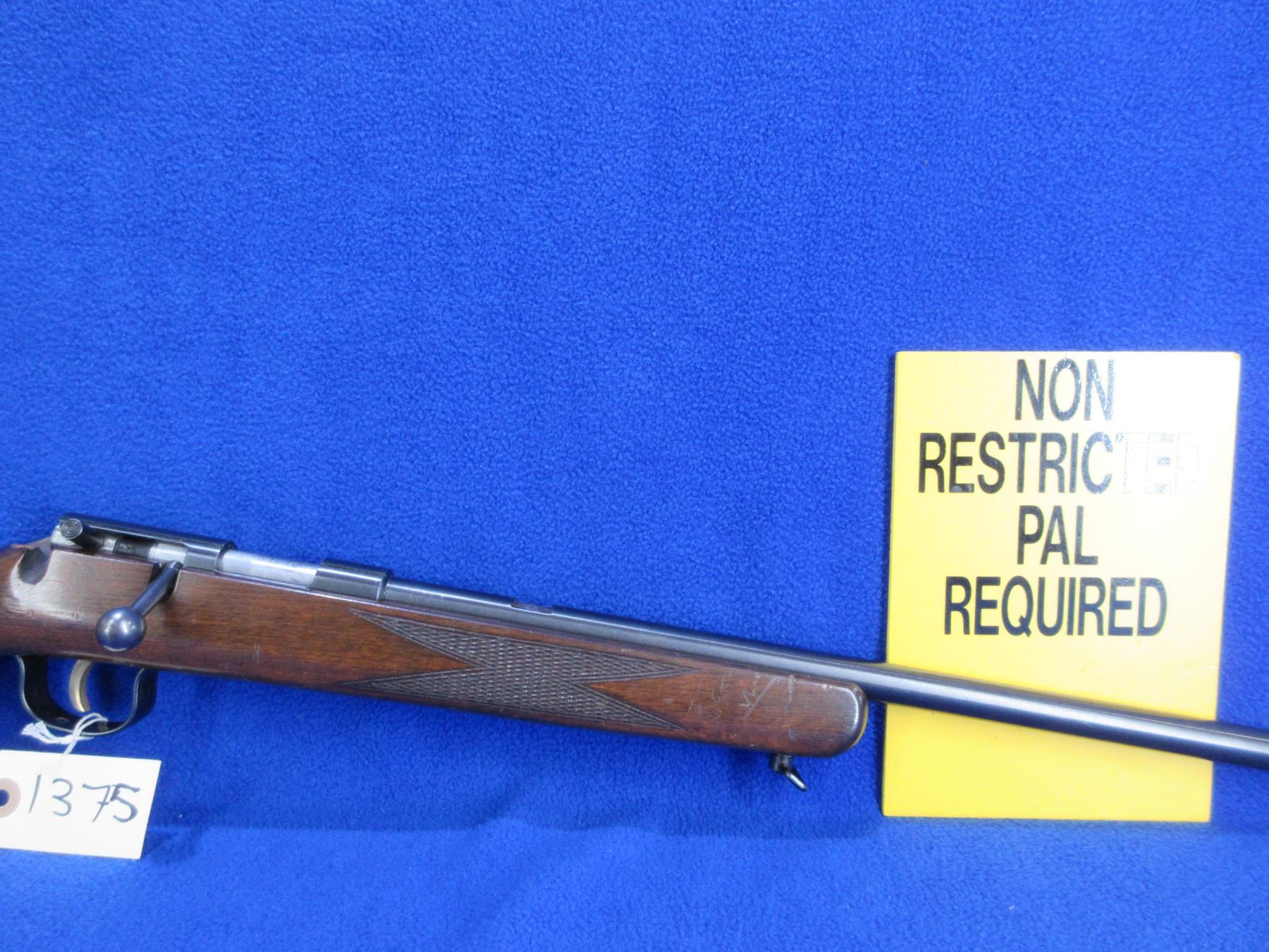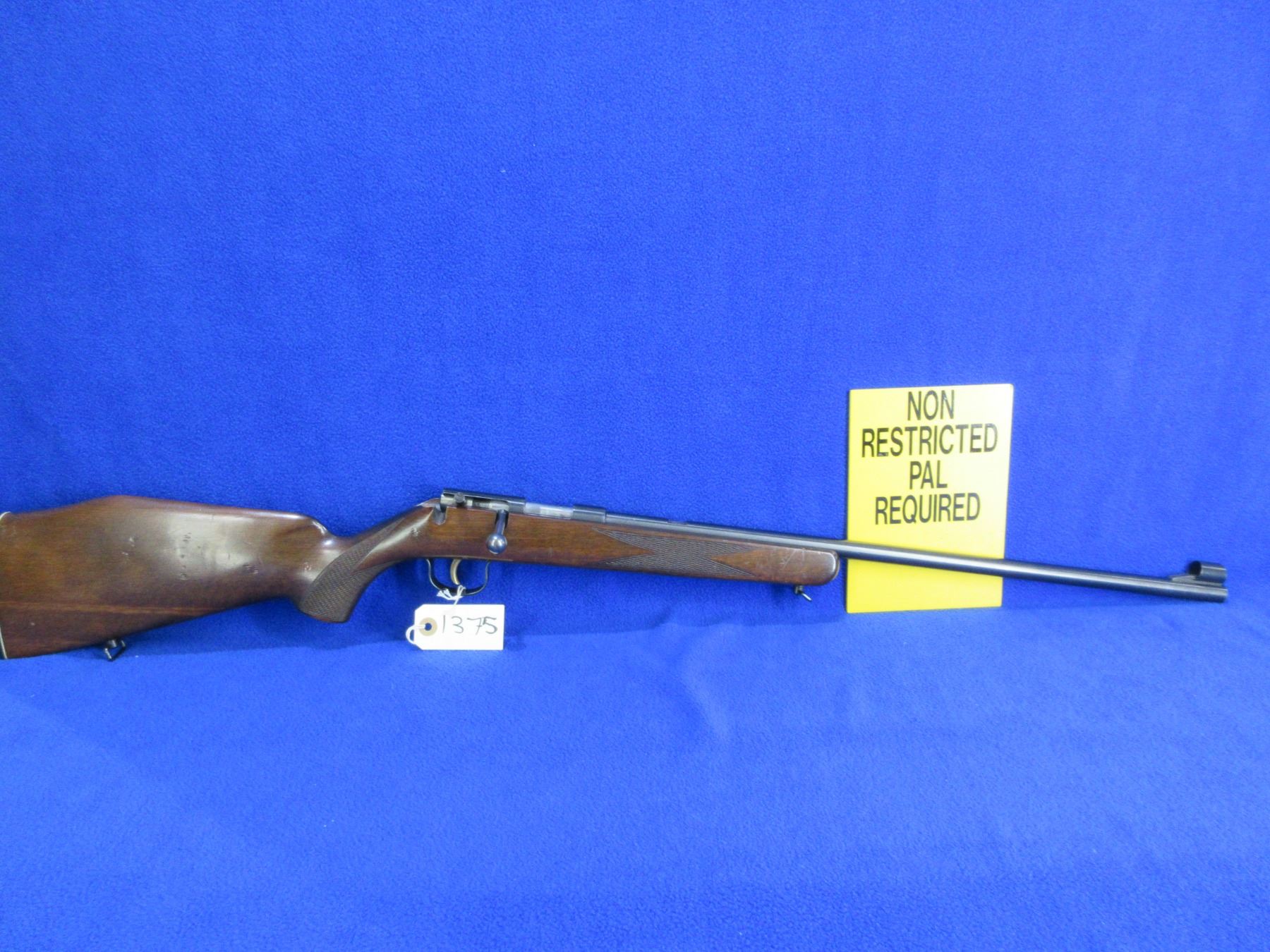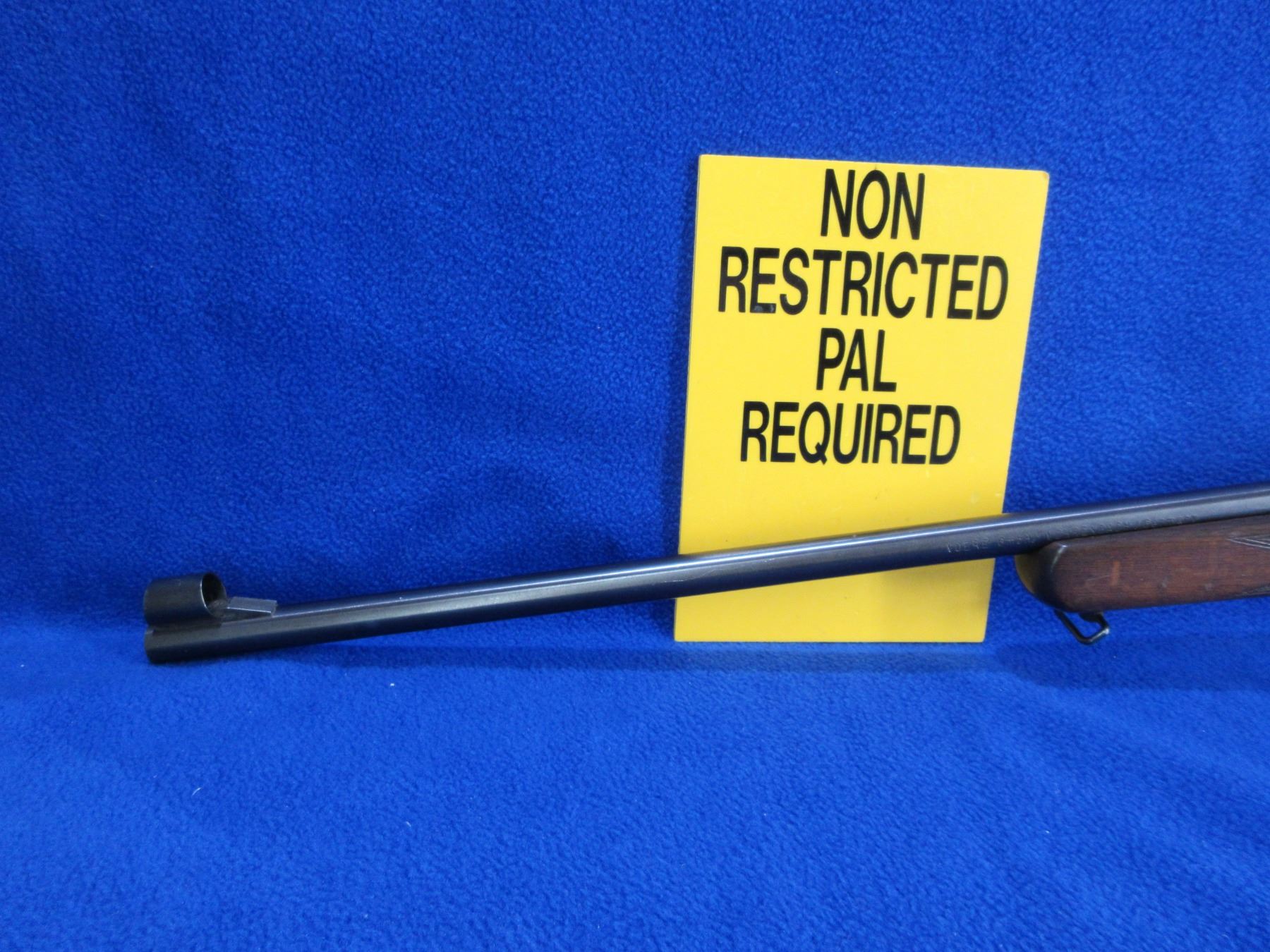 Non-Restricted - Voere Made in Germany in 22 LR - This is a single shot bolt action rifle, action appears to be in good to very good working order. Barrel is 21 1/2", rifling is good to very good, bluing is good to very good, has front sight, missing rear sight but has integral base, stock is good with usage marks, length of pull is 14", butt plate good, comes with swivels. Ser # 567196