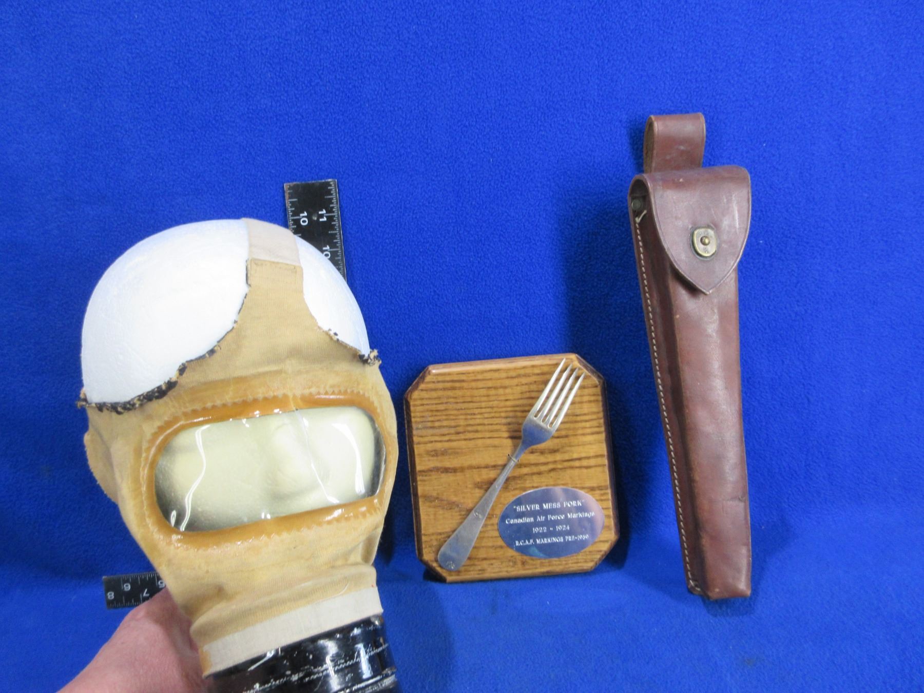 Lot 1379 WWII Gas Mask w/ C-Broad Arrow, RCAF Silver Fork & Leather Case 7B/1271