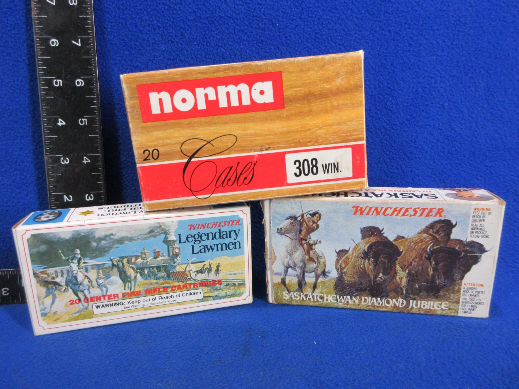 Lot 1389 3 Empty Collector Ammo Boxes - Diamond Jubilee, Legendary Lawmen, Norma