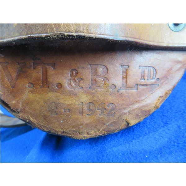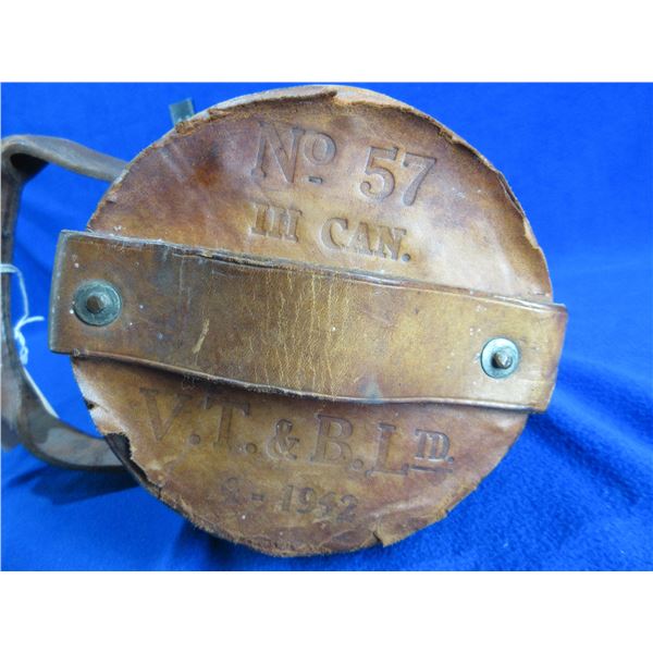 Naval Cordite Powder Leather Carry Case - No. 57, III CAN, V.T. & B. Ltd., 4-1942 - Has Broad Arrow Mark - Leather has some wear