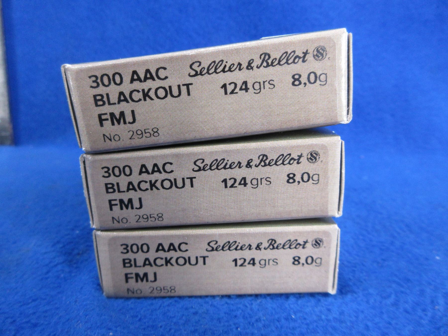 300 AAC Blackout 124gr FMJ (Pick Up or Ship by UPS Only) Sellier & Bellot Cartridges - 3 Boxes of 20