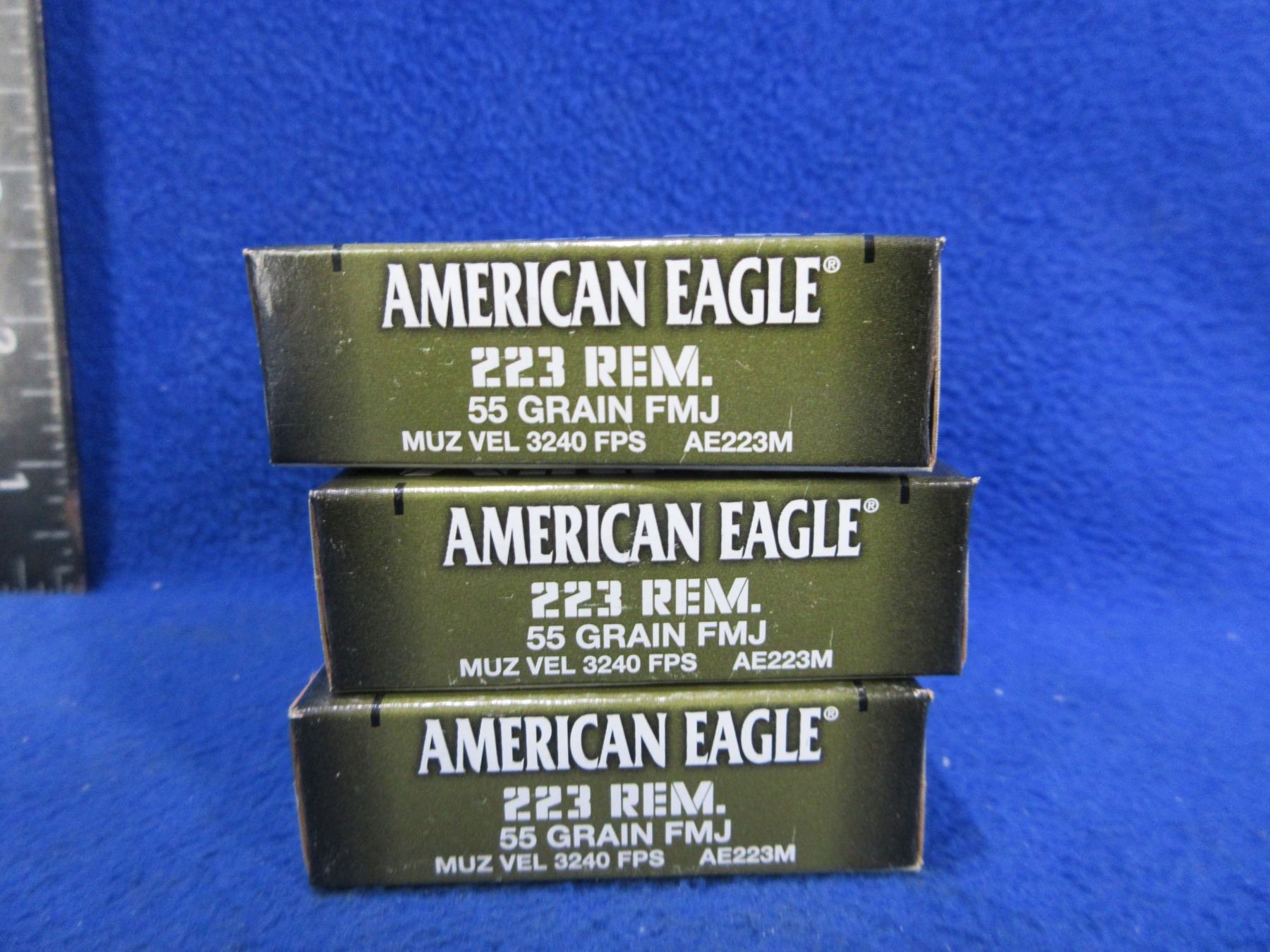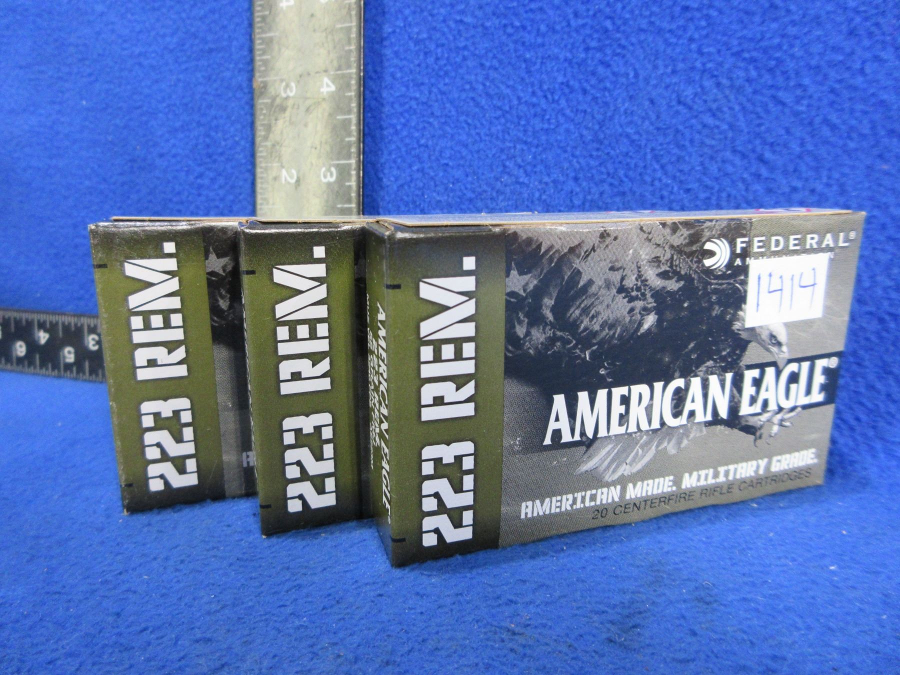 223 Rem. 55gr FMJ Federal American Eagle Cartridges (Pick Up or Ship by UPS Only) - 3 Sealed Boxes of 20