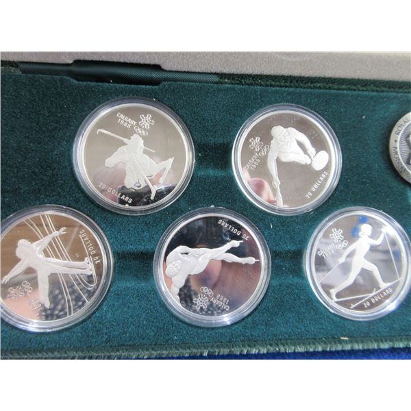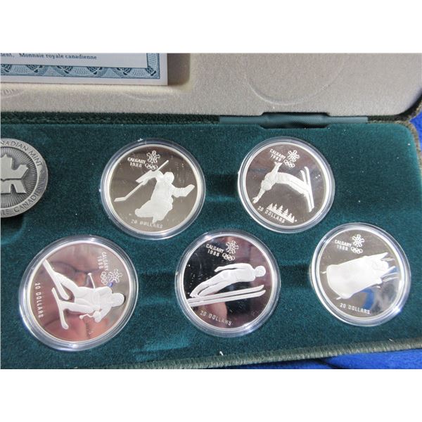 Calgary 1988 Olympic 10 Coin Set - $20.00 Proof, .925 Silver, One Troy Ounce Coins - Comes with Certificate of Authenticity, display case, coin info cards and original box