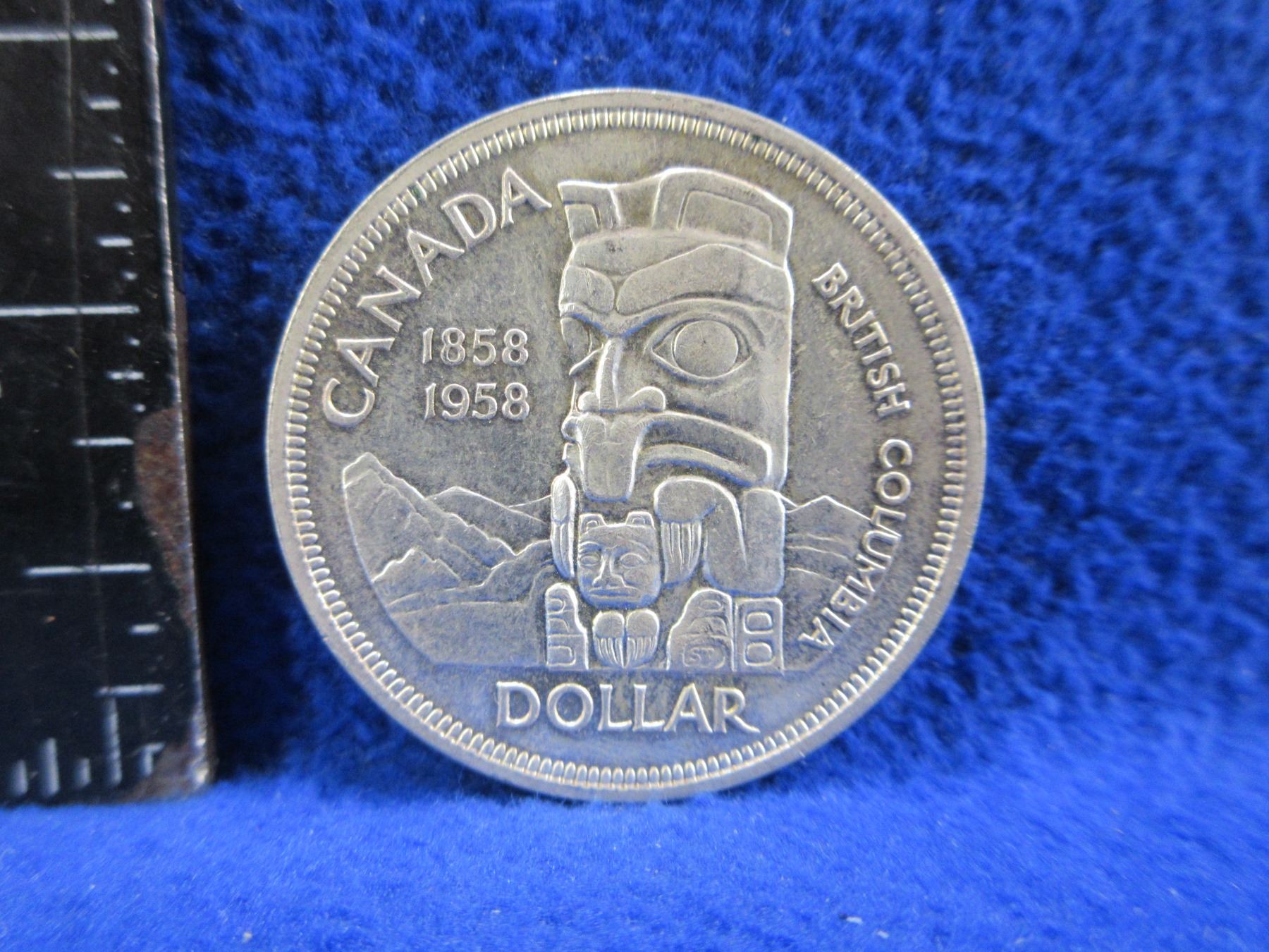 Canada 1858-1958 One Dollar Coin - .800 Silver - Elizabeth II (British Columbia)