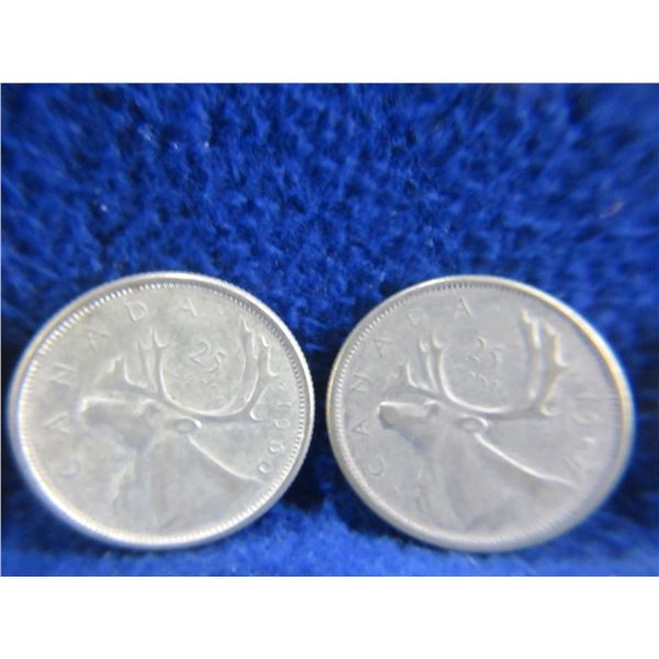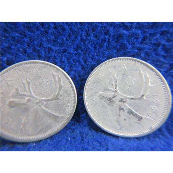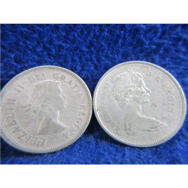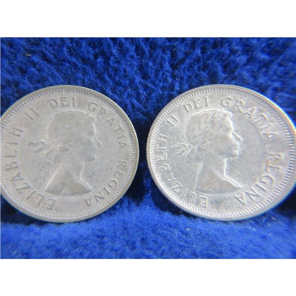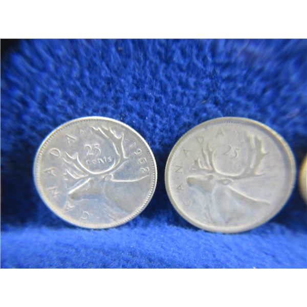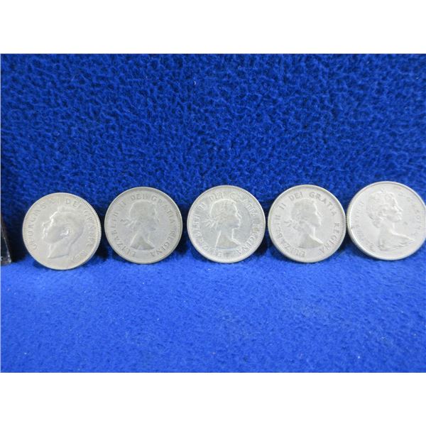 5 Canadian 25 Cent Coins - 1952, 1955, 1957, 1960 (.800 Silver), 1968 (.500 Silver)
