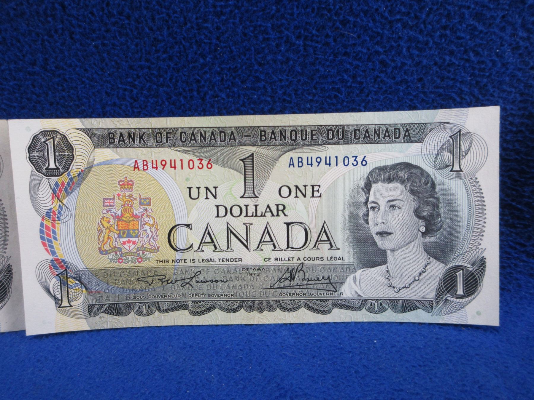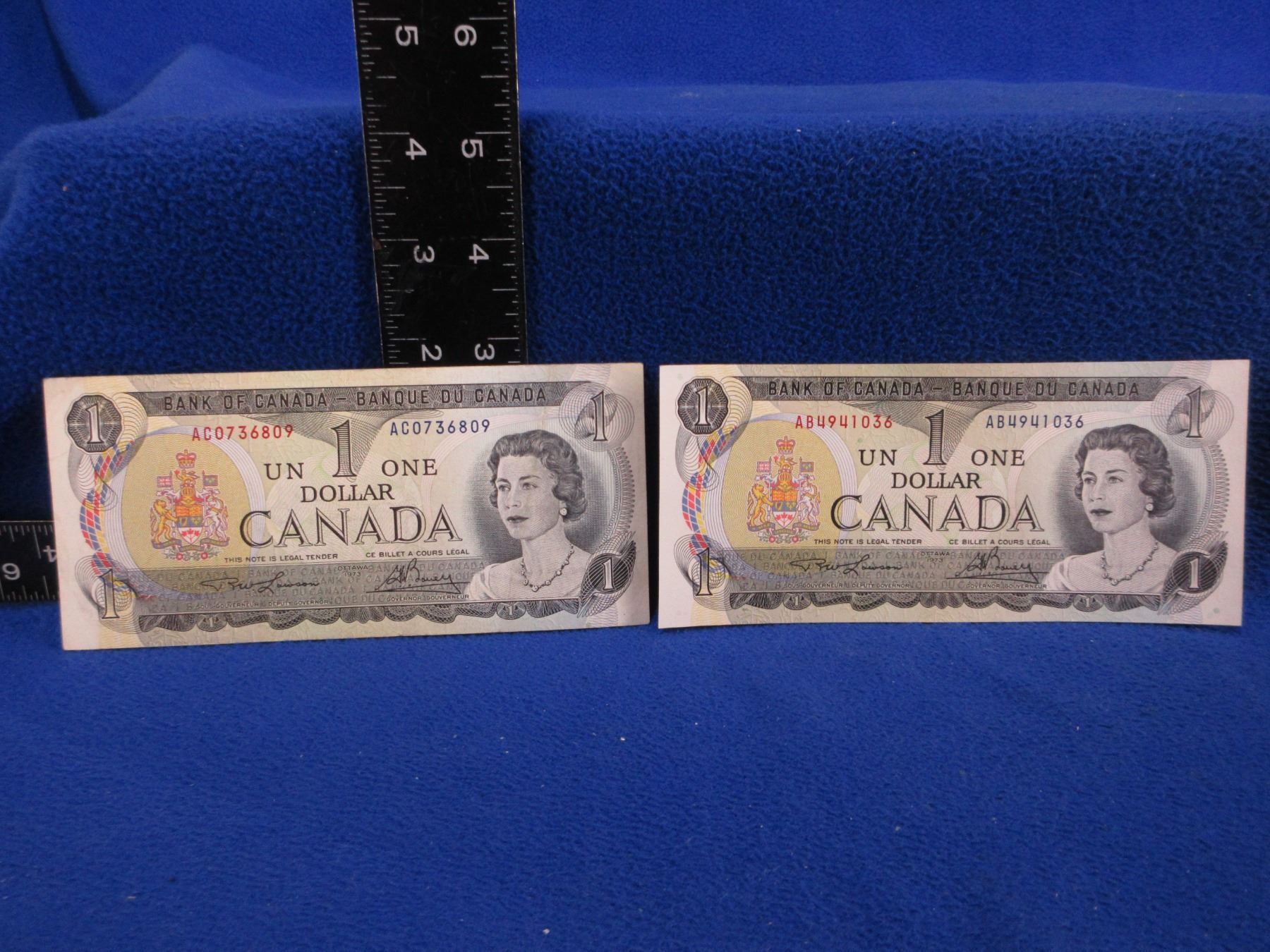 2 Canadian One Dollar Bills - 1973 x 2