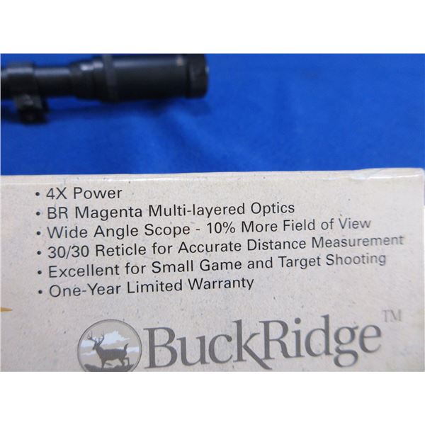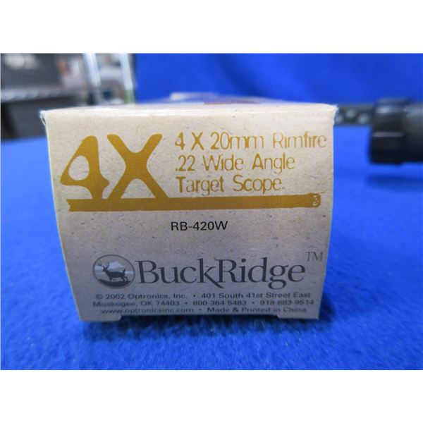 Buckridge 4x20mm RF .22 Wide Angle Target Scope w/ Rings - Appears Clear, 30/30 Reticle, Appears Unused - Comes with original box and lens covers