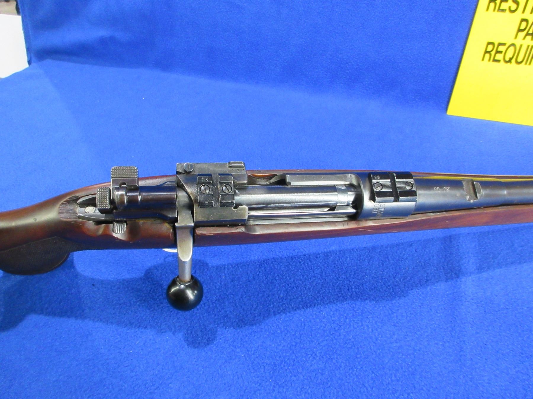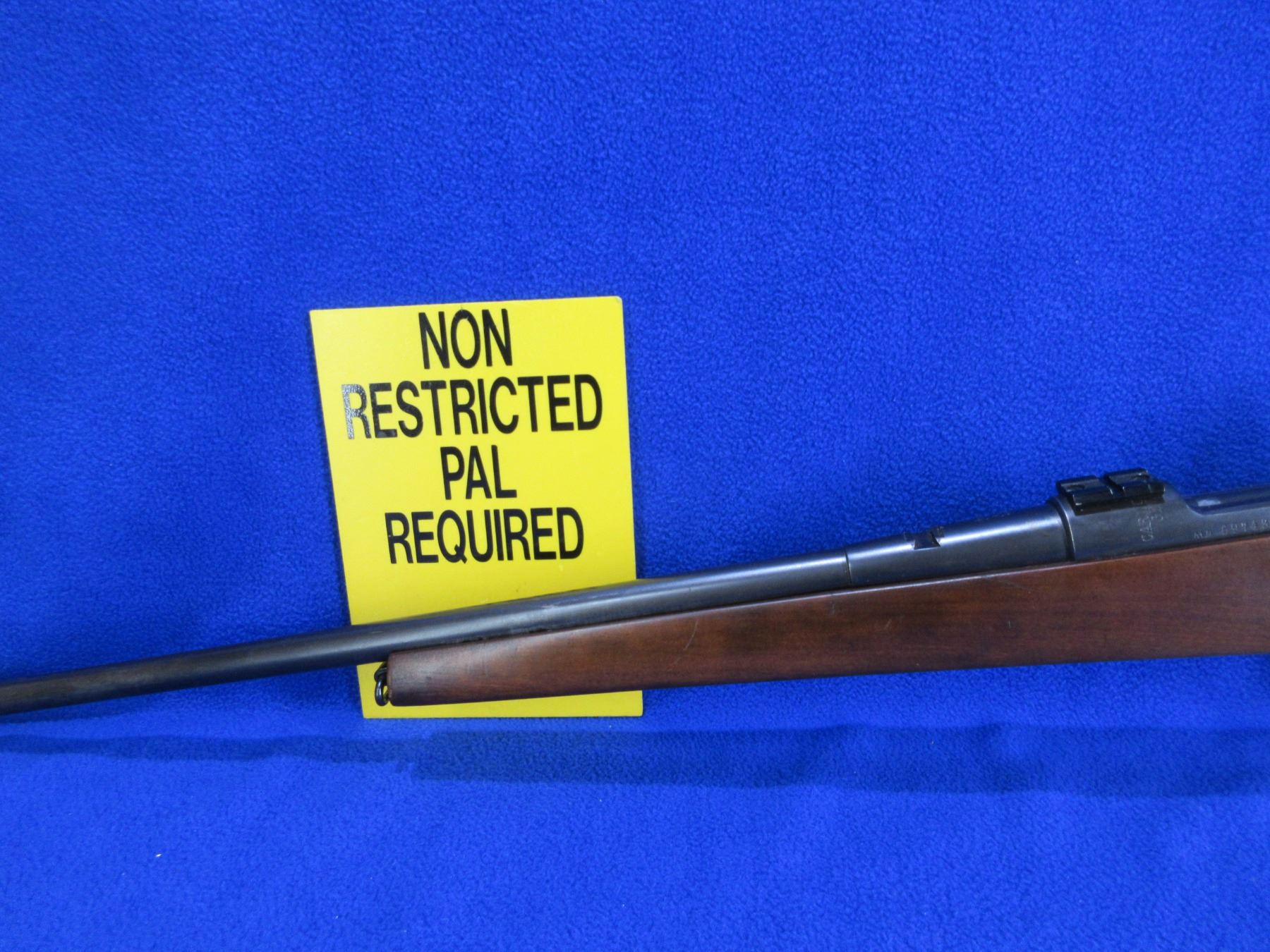 Non-Restricted - Carl Gustof Model M96 in 30-06 Sprg - This is a bolt action rifle with floorplate magazine, action appears to be in good to very good working order. Barrel is 23 1/2", rifling is good to very good, bluing is good with wear spots, has front sight, missing rear sight but has Weaver style bases, stock is good with usage marks, length of pull is 14", rubber recoil pad good, comes with swivels. Ser #69743
