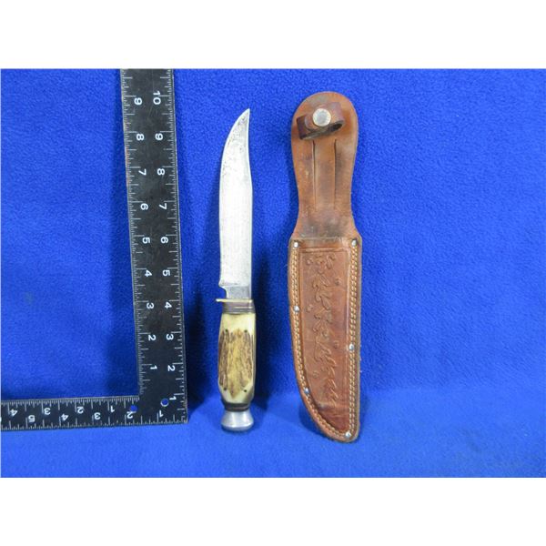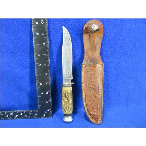 Premier H73 Solingen Fixed Blade Hunting Knife w/ Stag Handle and Leather Sheath - 5 3/4" Blade, 9 3/4" Total Length