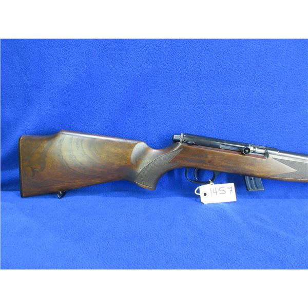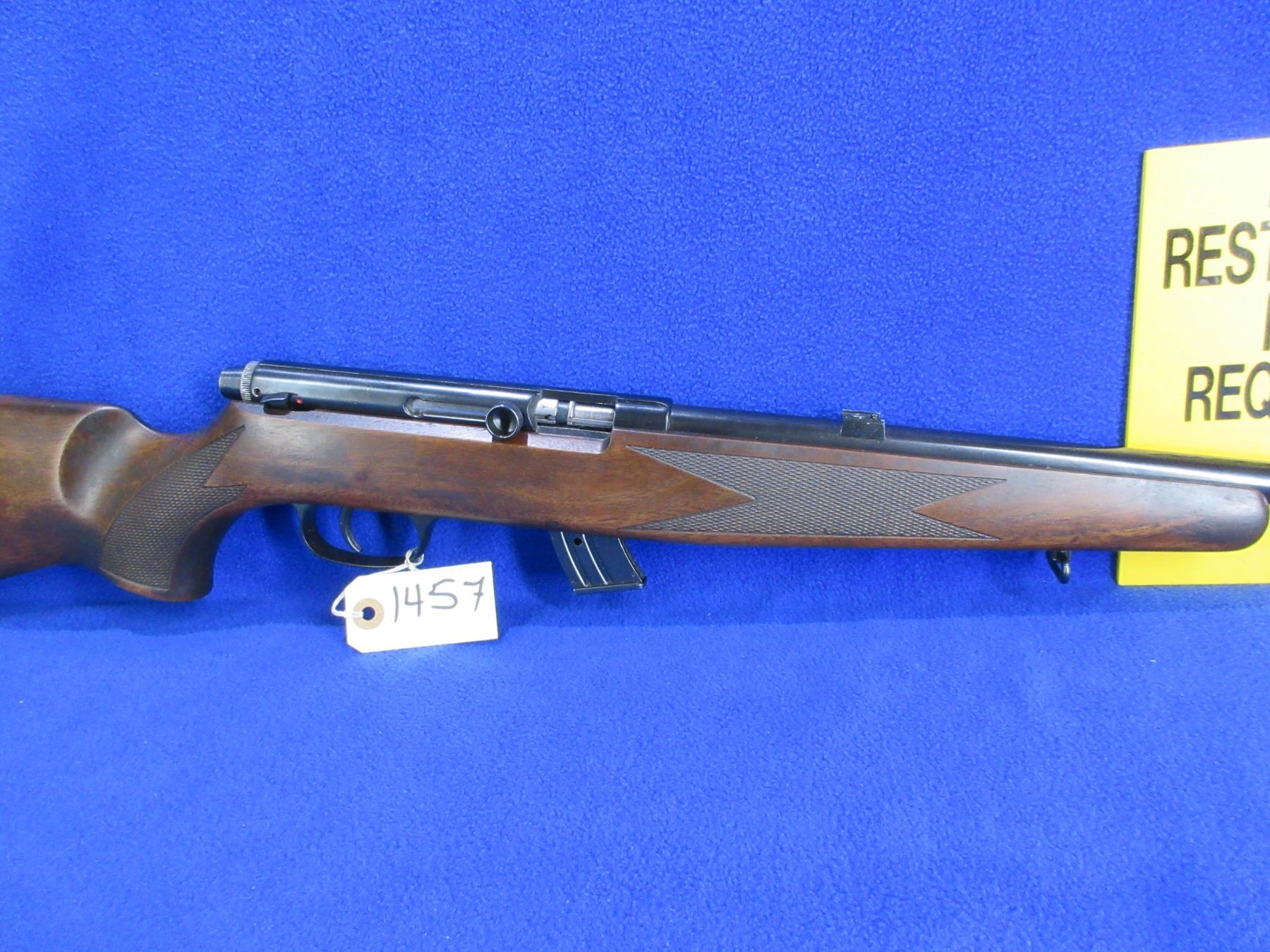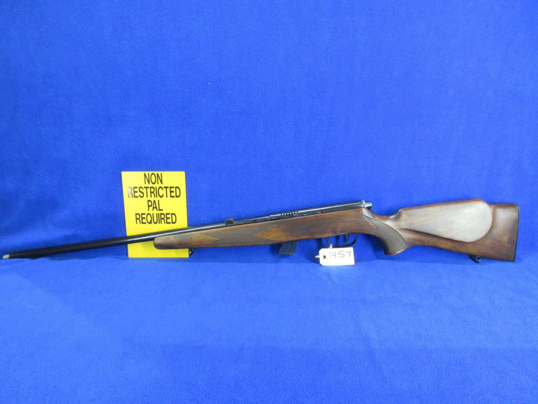Non-Restricted - Krico Made in West Germany in 22 LR - This is a semi-auto rifle with removable magazine, action appears to be in good to very good working order. Barrel is 23 1/2", thread cap missing, rifling is good to very good, bluing is good to very good, sights are missing but has integral base, stock is good with usage marks, length of pull is 13 1/2", butt plate good, comes with swivels. Ser # 296851