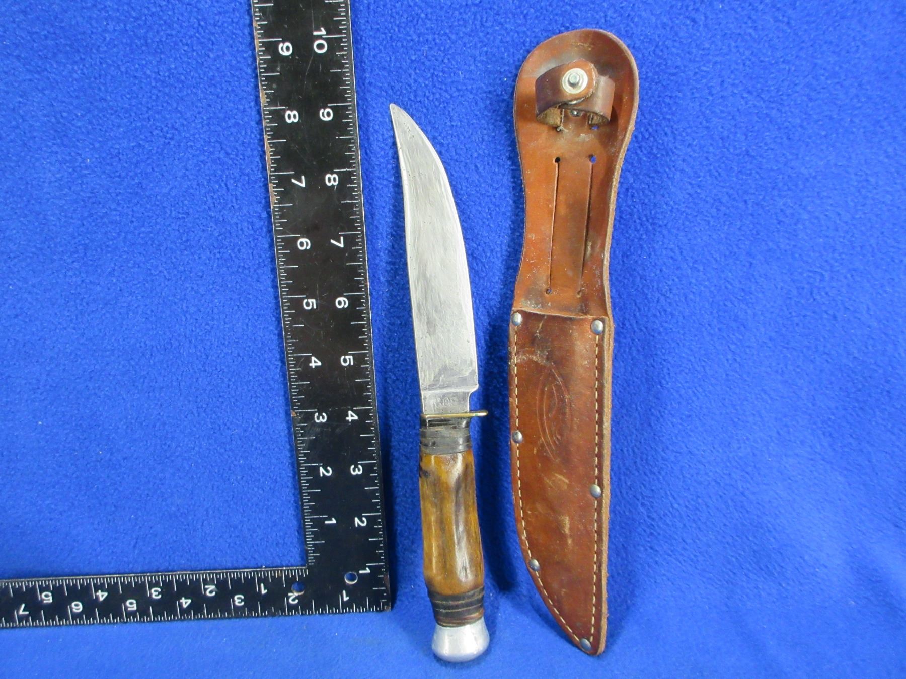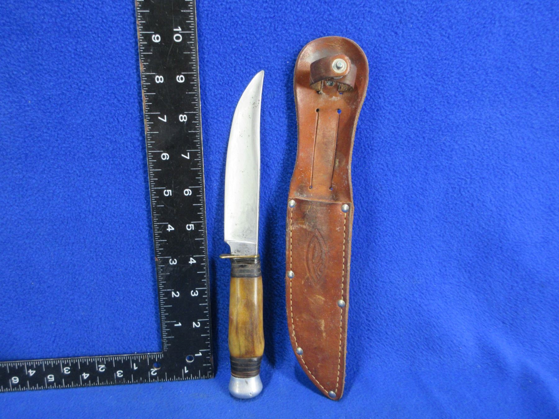 Lot 1471 Mibro 808 Solingen Fixed Blade Knife w/ Stag Handle & Leather Sheath