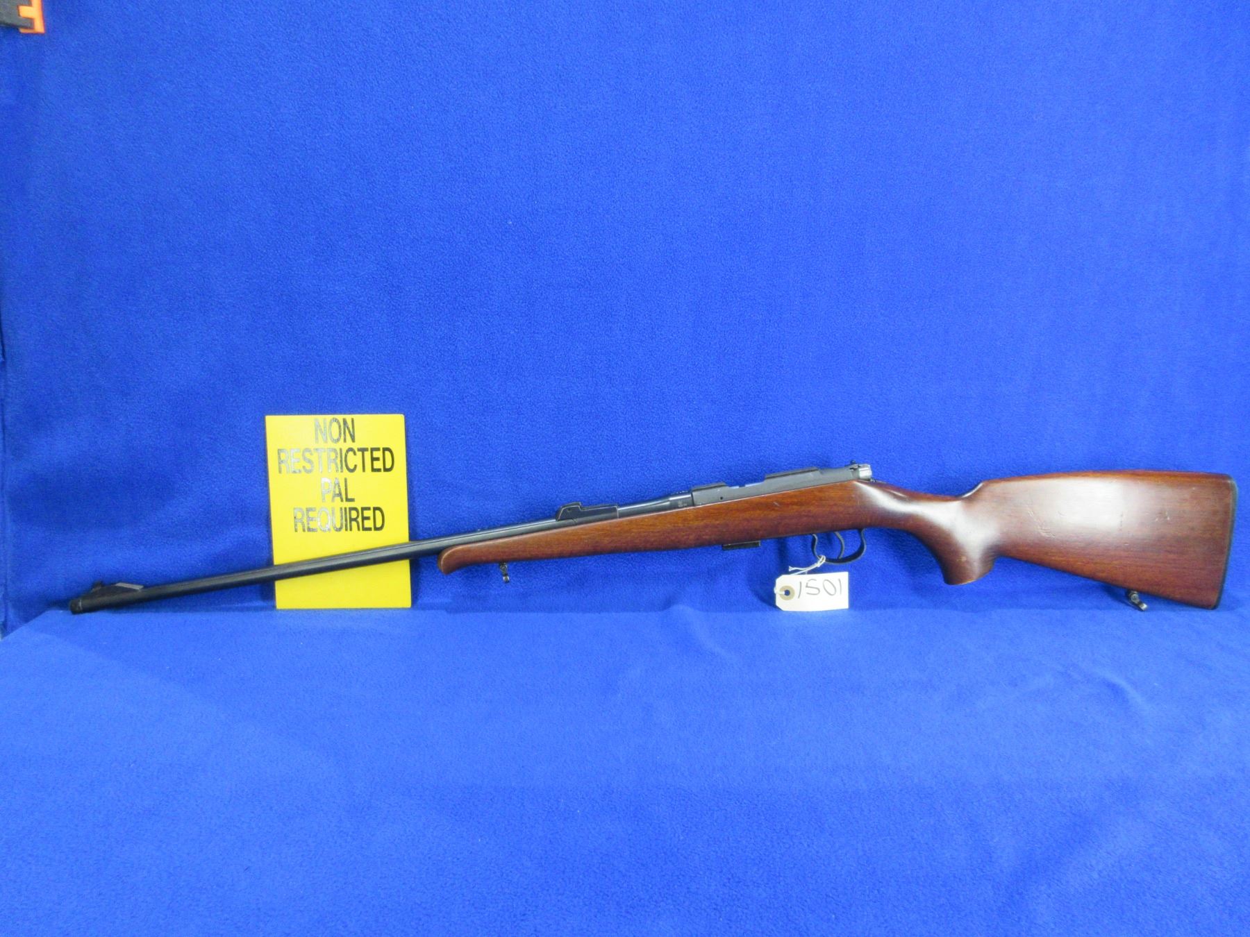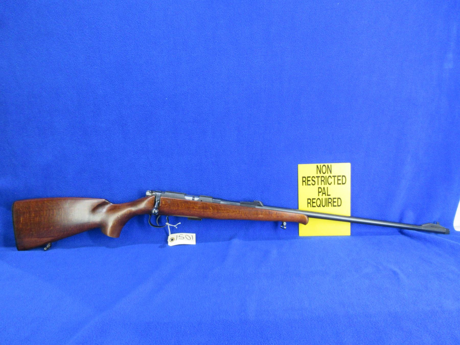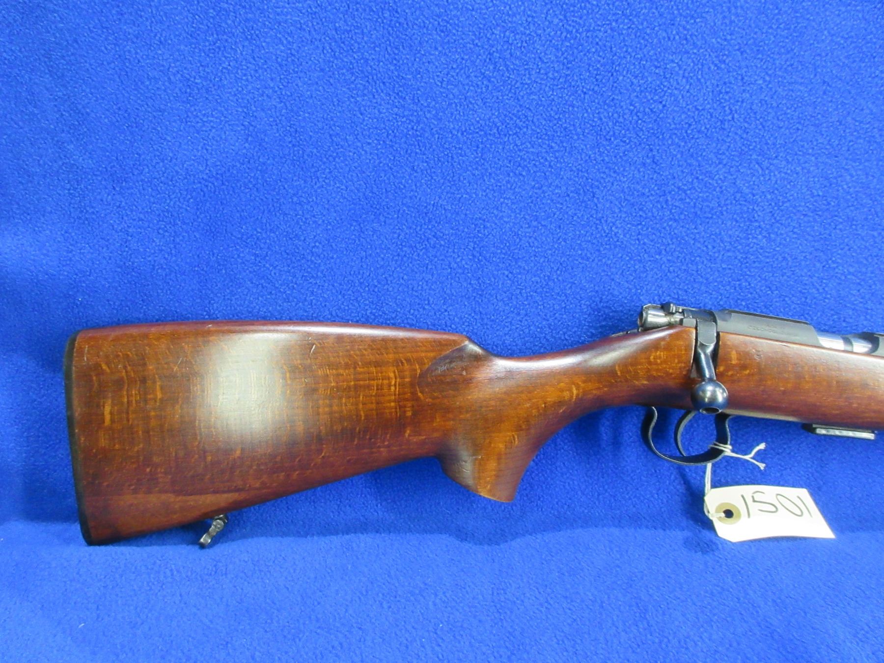 Non-Restricted - BRNO Model 2-E-H in 22 LR - This is a bolt action rifle with removable magazine, action appears to be in good to very good working order. Barrel is 24 3/4", rifling is good to very good, bluing is good, has front sight, missing rear sight but has integral base, stock is good with usage marks, length of pull is 14", butt plate good, comes with swivels. Ser #419080