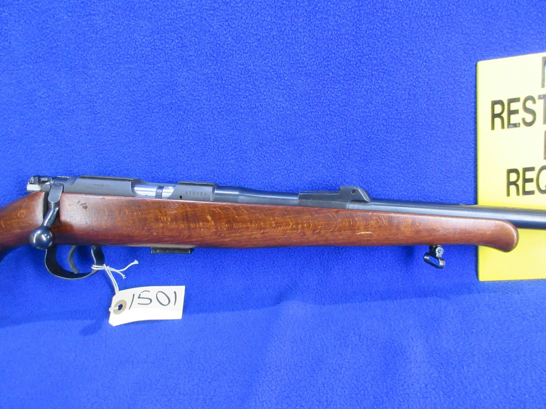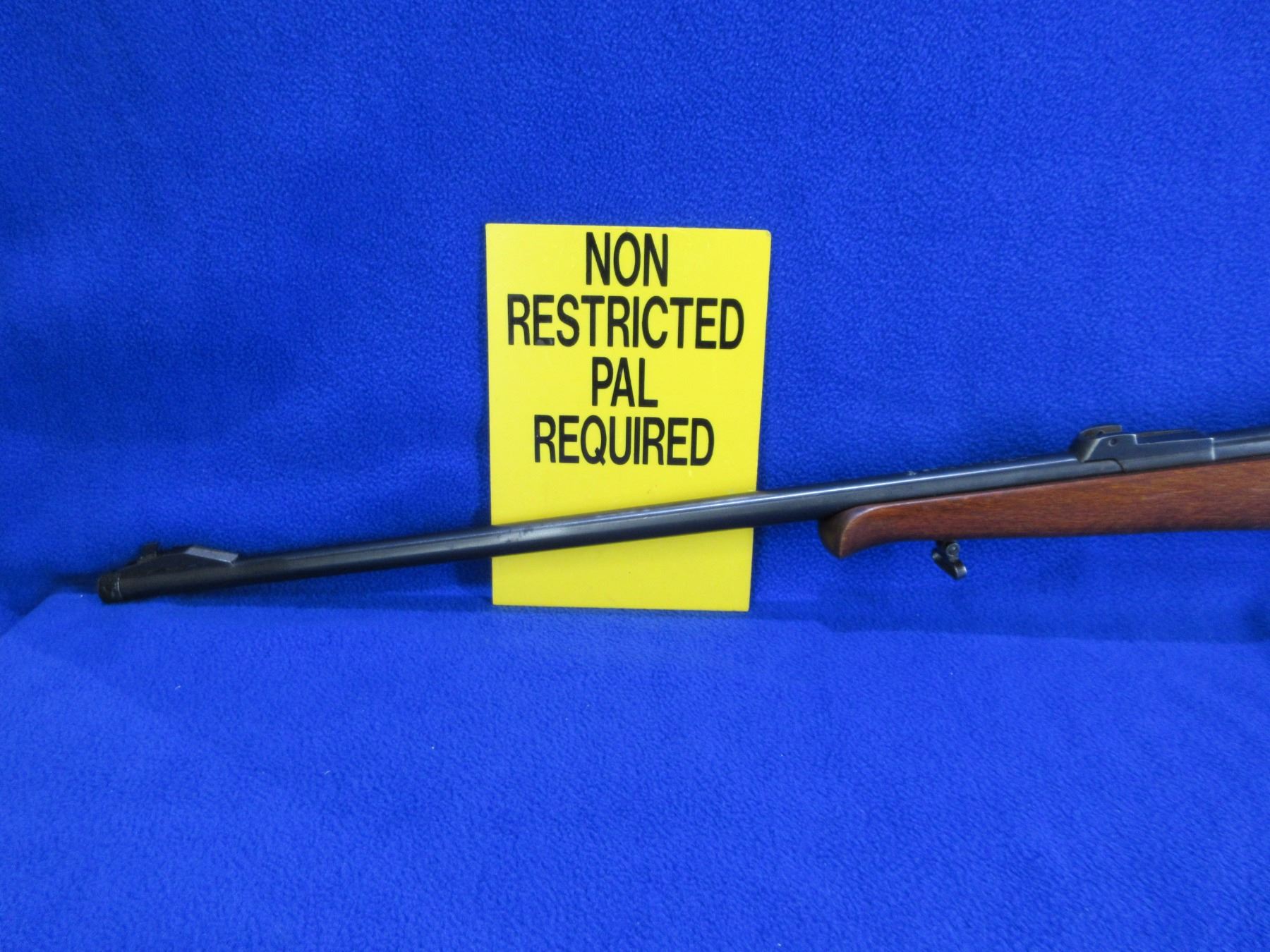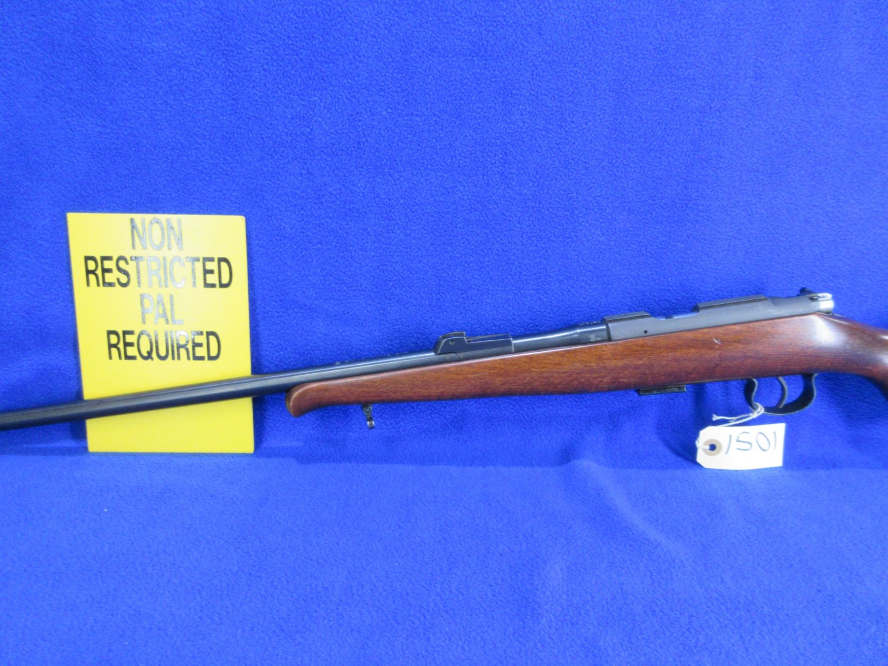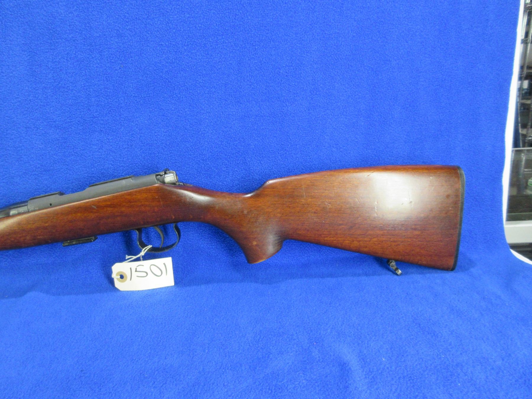 Non-Restricted - BRNO Model 2-E-H in 22 LR - This is a bolt action rifle with removable magazine, action appears to be in good to very good working order. Barrel is 24 3/4", rifling is good to very good, bluing is good, has front sight, missing rear sight but has integral base, stock is good with usage marks, length of pull is 14", butt plate good, comes with swivels. Ser #419080